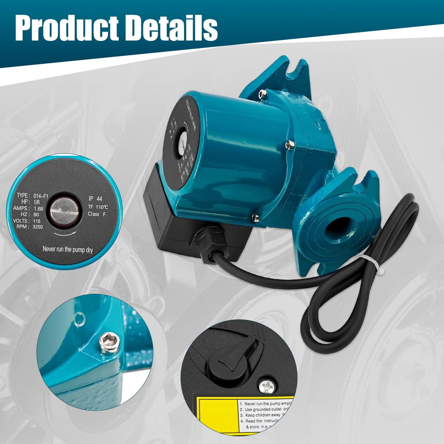 | Included Components | 1*0014-F1 Circulator Pump |