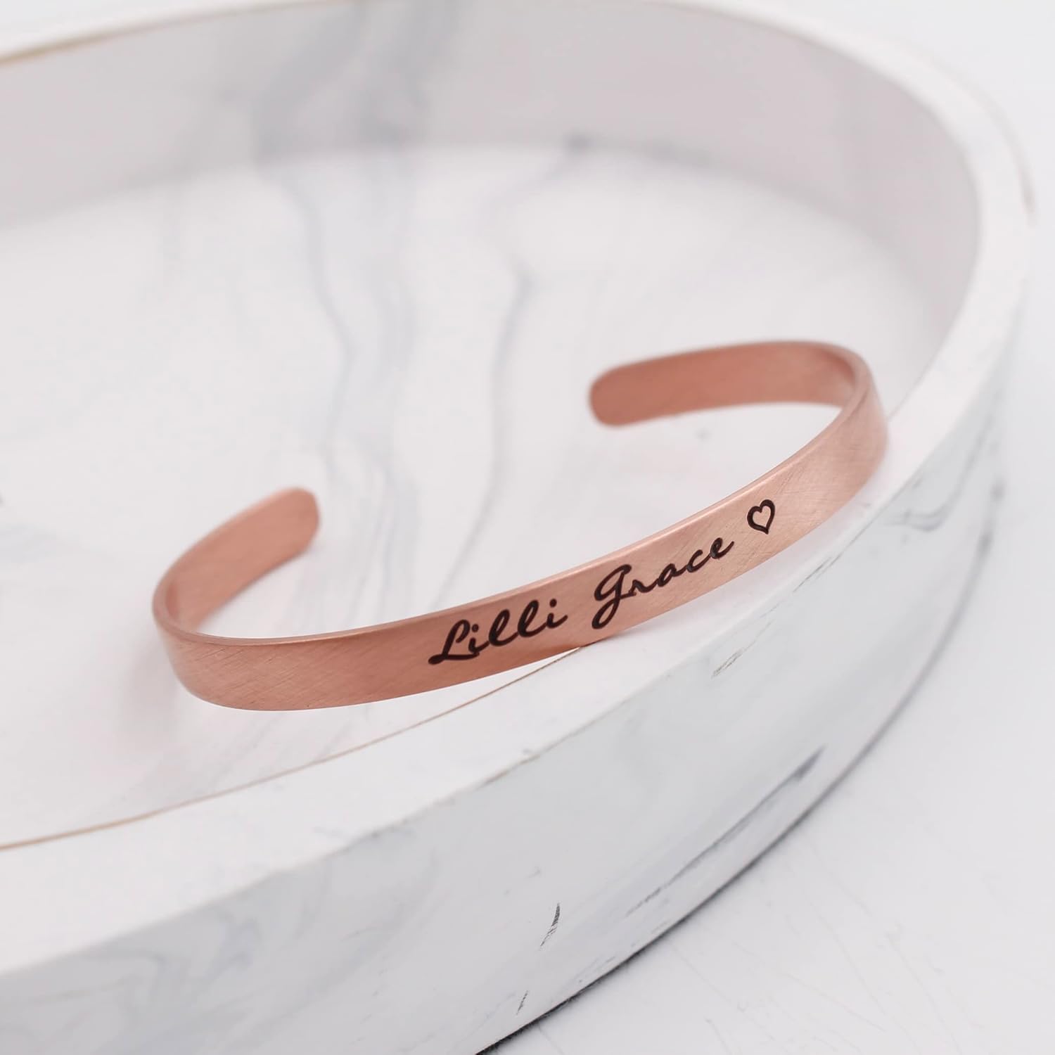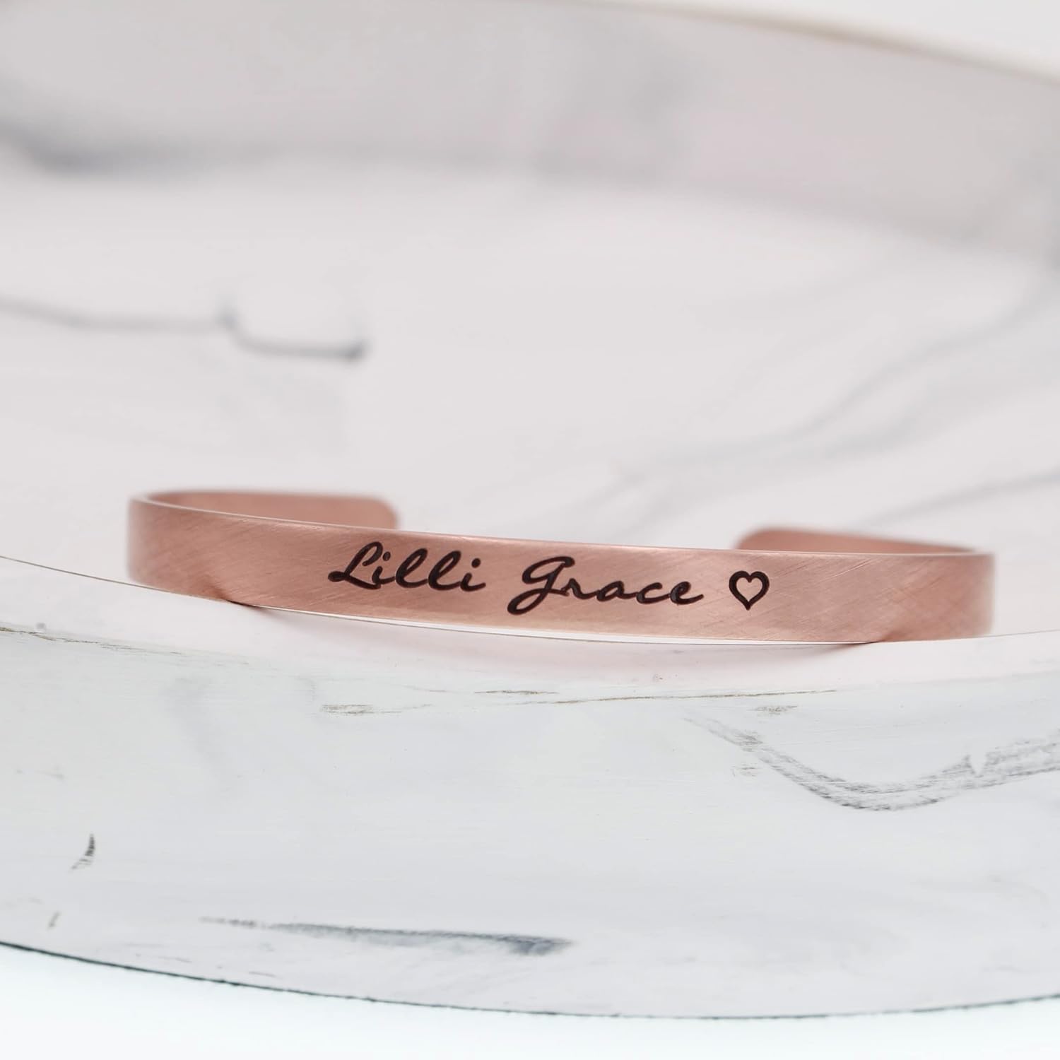 This bracelet makes a beautiful, elegant gift for anyone. We do not coat our copper cuffs to preserve the healing qualities of the metal. Please note that all metals including brass, copper and sterling silver will develop a natural patina over time. You can polish it to shine using a polishing cloth or choose to leave it which gives your price an antiqued look.