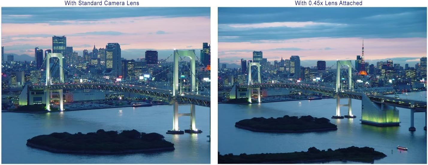 Capture the entire scene with this wide angle conversion lens. Ideal for nature shots, sports and events! -- This Item Includes: Wide lens, Lens bottom cover, Lens cap, Lens pouch.