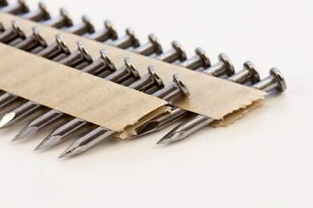 Designed to shoot into joist hangers and metal brackets, the nails provide excellent corrosion resistance and durability. The 304 SS paper tape stainless steel joist hanger nail is made for use with permanent wood construction and treated lumber. The nail is 1-1/2" long, and features a smooth .148" thick shank and a full round head. The 31-34 degree paper tape structural joist hanger nail is guaranteed to be compatible with most metal connector nailers. Please check with your tool manual for nail compatibility.