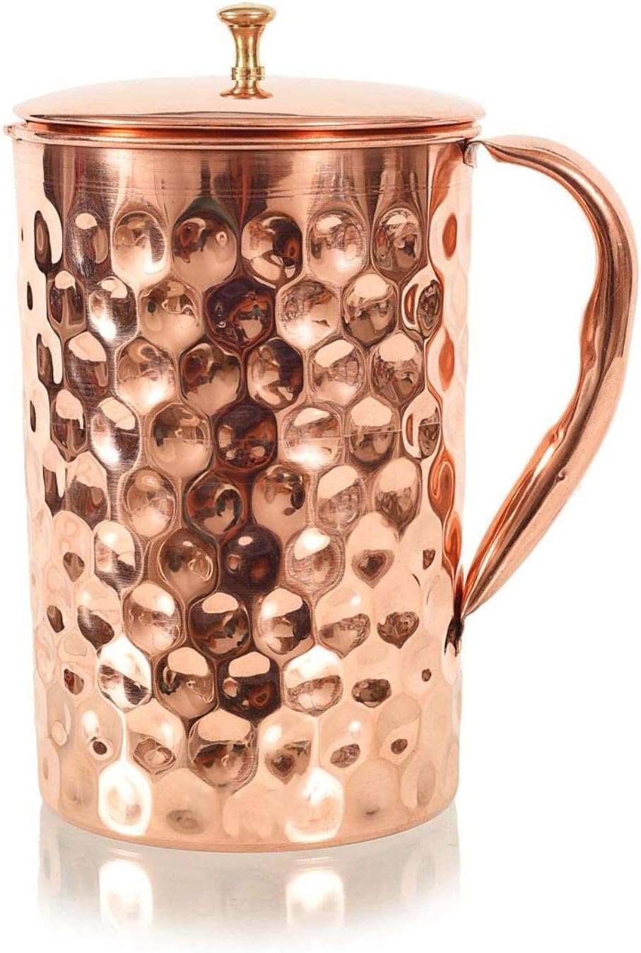 BishtHub 1 Copper Jug And 2 Glass Mix Drinkware Set Copper Utensils Kitchen item Drinking Water Storage Serveware Item- (1500 ml Jug+ 300 ml Glass) ✦ Sale For- 1 Copper Jug And 2 Glass✦ Type- Jug And Glass✦ Color- Brown✦ Design- Silver Touch Design✦ Material- Copper✦ Item Capacity- Jug- 1500 ml, Glass 300 ml Each GlassABOUT THIS ITEM✥ Making it an ideal gift or daily-use item. This beautiful and useful product has been handcrafted and artisan crafted by skilled craftsmen with care & love and is of exceptional quality. ✥ Enhance Your Living Space: Elevate the ambiance of your kitchen or bedroom with this striking Water Bottle And Glass, showcasing a perfect marriage of vintage-inspired design and contemporary utility.✥ Multiple uses - this pure copper drinking bottle keeps all your favorite drinks cold and refreshing.✥ This Copper Water Glass is constructed from high quality pure copper. Designed to offer many years of use and enjoyment.Copper Utensils Are Not Suitable For Storing Processed Food citric food Or Juices Of Any Kind. Copper Vessels Are Used To Store Drinking Water. ✥ They Need To Be Washed Regularly - At Least Once In 24 Hours.