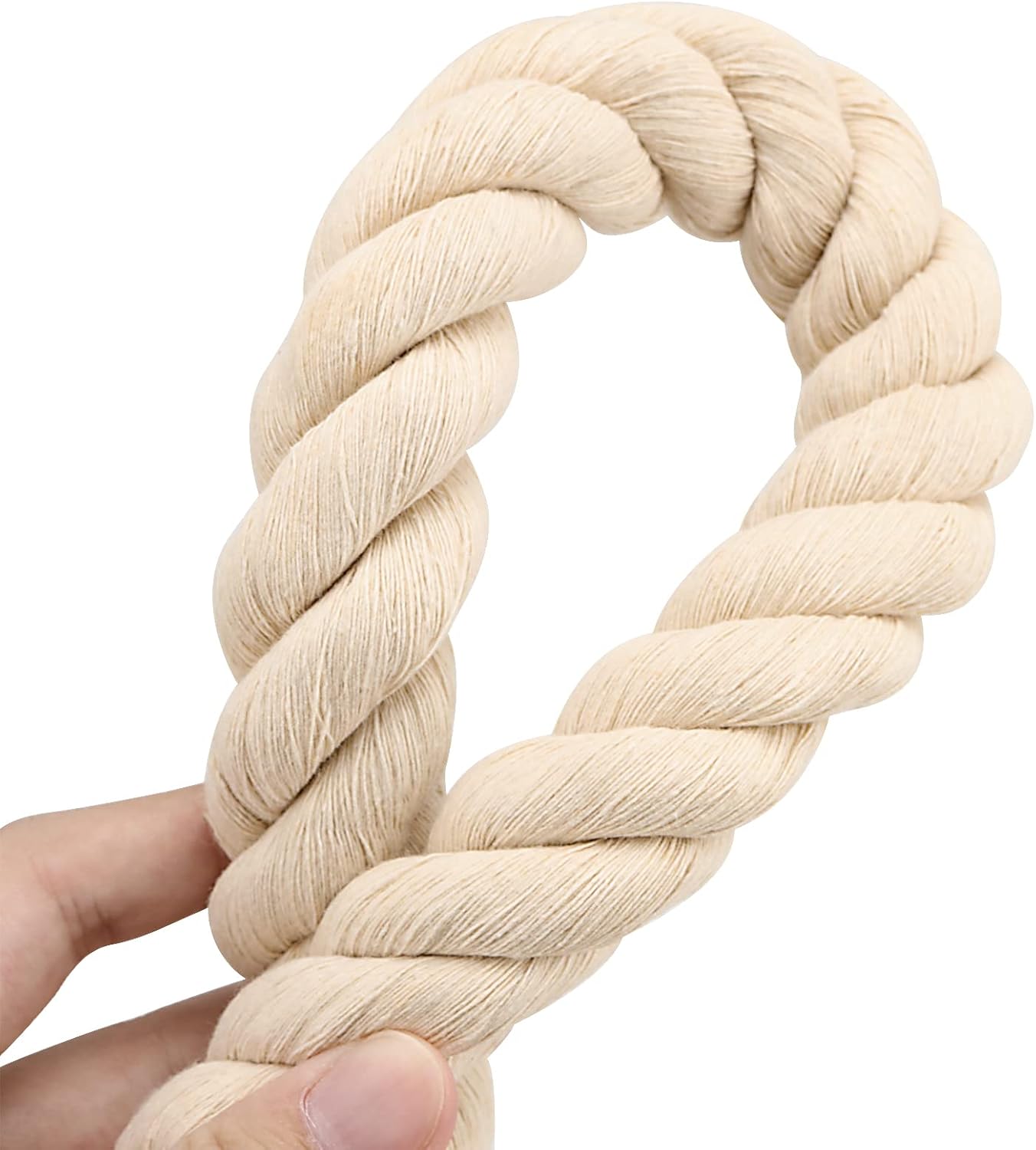 ABOUT US Providing excellent quality products for customers is consistent pursuit of MUKLEI. We do our best to make our customers to enjoy a satisfied shopping experience. Welcome to shop at our online shop!!! WHY SHOP AT MUKLEI?√ 3 strand twisted cotton rope is a natural fiber rope with high strength. It is nice, very soft to the touch, and will not fray easily. √It holds up really nicely. This natural cotton rope has a soft texture and cozy fuzzy fringe touch that allows you to easily cut, knot or dye. √With a diameter of 1 inch and a total length of 65 feet, this length is sufficient. Perfect for any task, whether DIY or handmade, or as a hanging rope. √The twisted macrame rope can be used for various projects, such as party wedding decorations, macrame rainbows, creative handbags, curtain rope tiebacks, etc. PRODUCT SPECIFICATION:Material: cotton Size: 65 feet x 1 inch Color: beige PACKAGE INCLUDES:1 x thick macrame rope