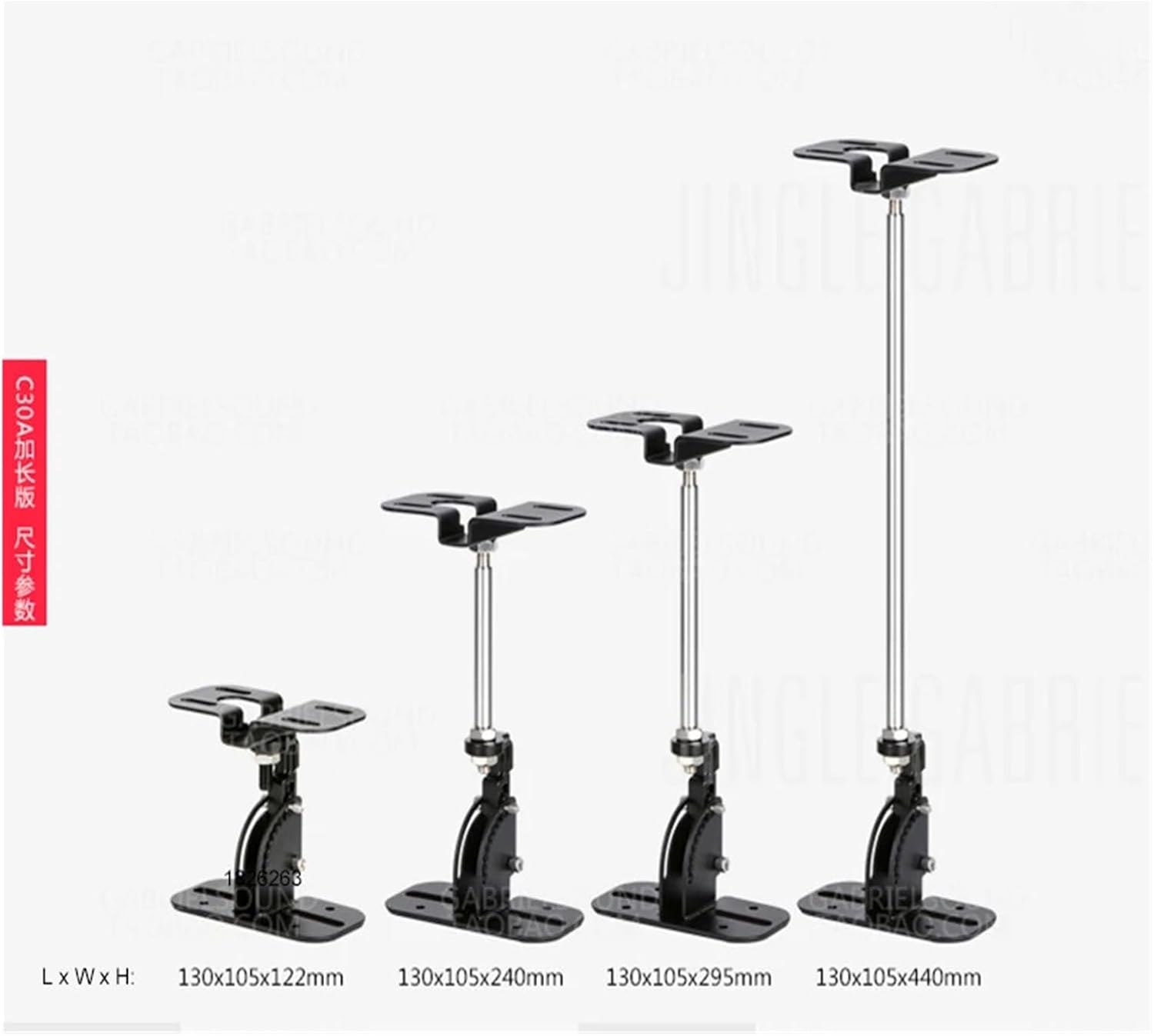 Monitor StandsSpecifications: >>>Model: BL-C30AMaterial: High-strength steelMax. load: 30 kg / 66 lbsTilt: 0~90°Rotation: 360°Distance from ceiling: 105mm depends on the length of the screwColour: BlackPacking: 1 pair (2 pieces)