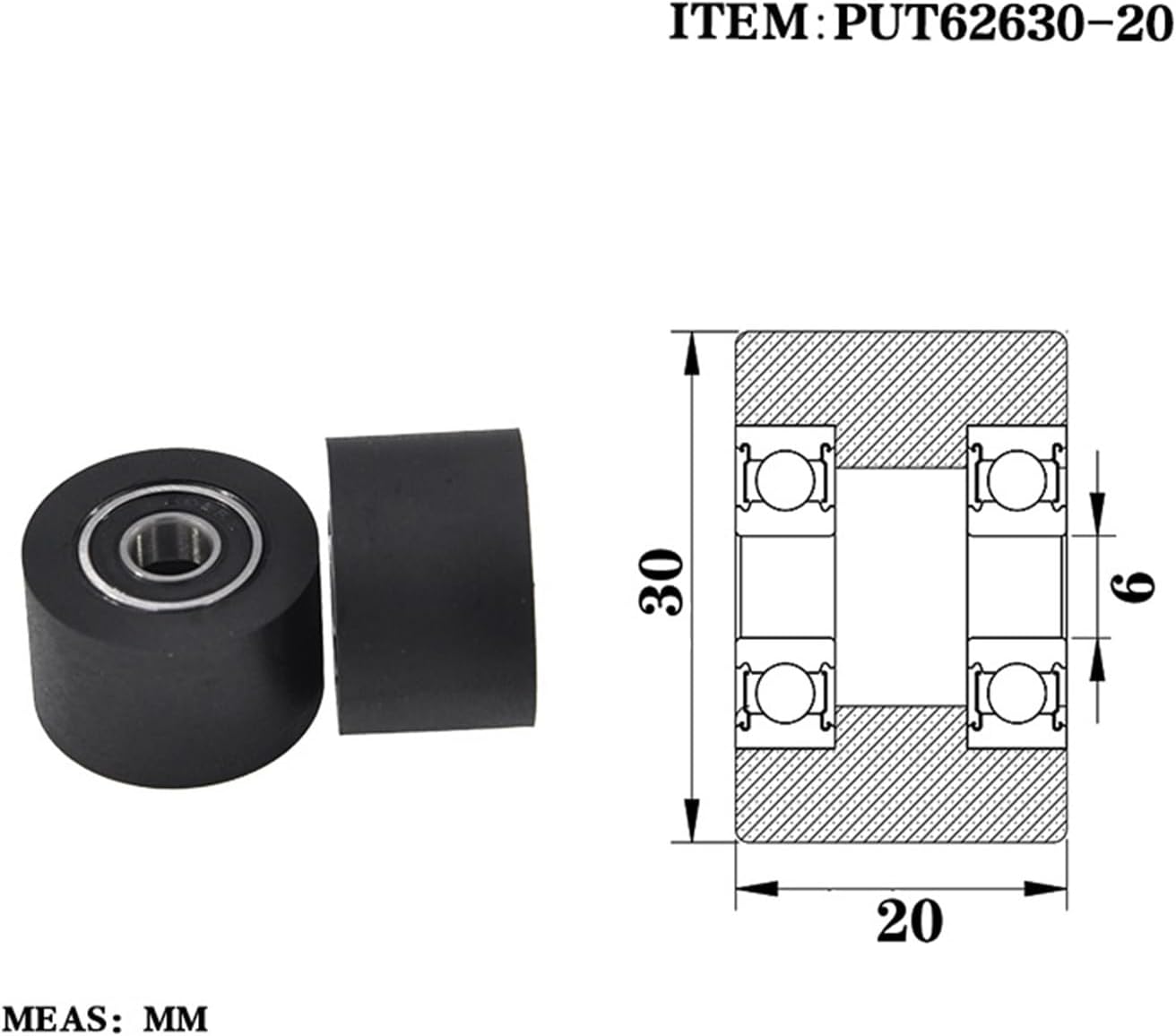 Bearings1 Pcs Double Bearing Polyurethane Rubber Sleeve PUT62630-20 Rubber Covered Bearing Wheel Guide Wheel PUT62630-20