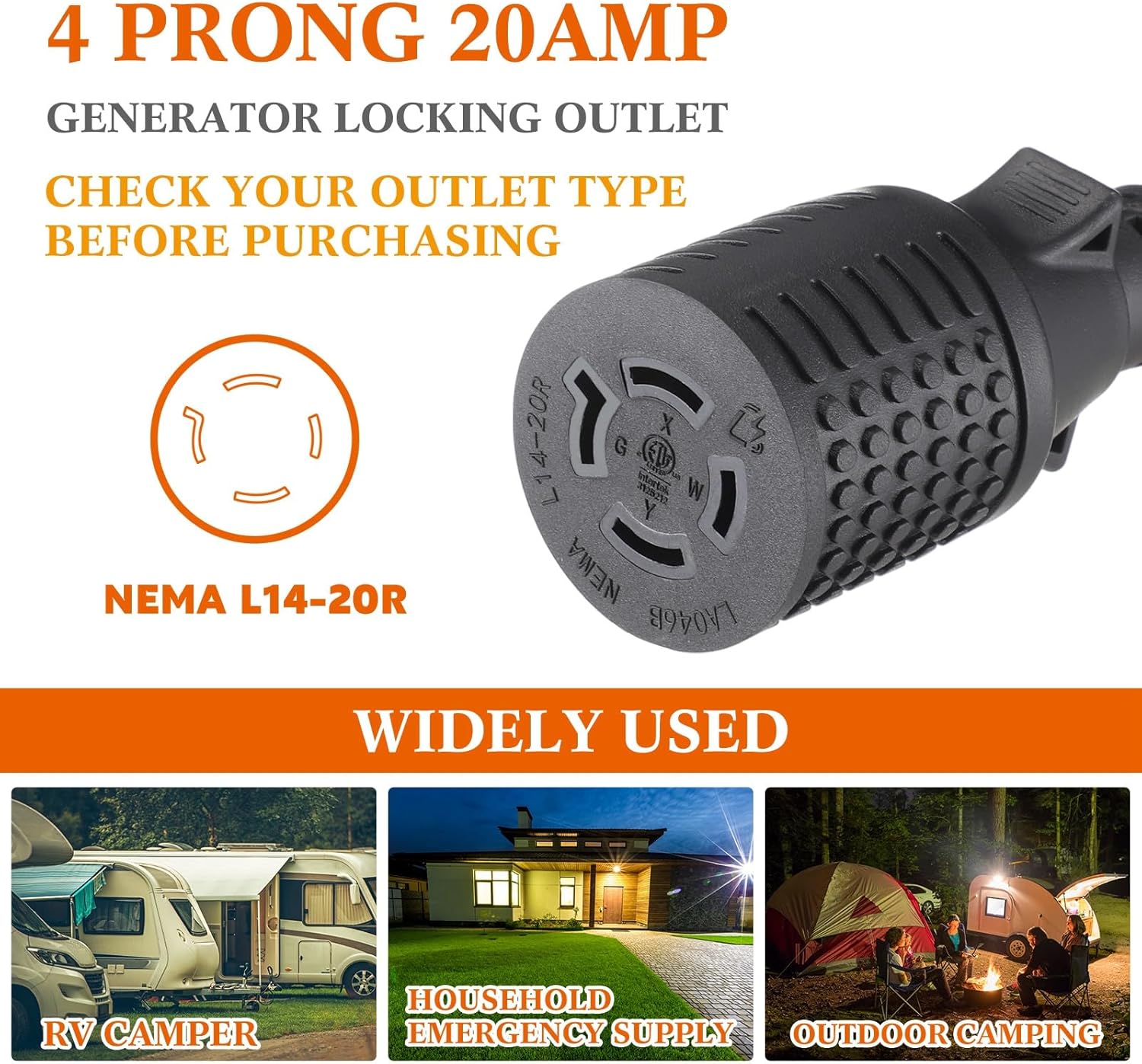 Features: Lengthy and Heavy-Duty Power Solution: Experience a solution that addresses your need for power over a distance with our 10ft heavy-duty extension cord. Its impressive span allows for flexible deployment, making it nice for reaching distant power sources. Crafted from quality materials. Plug and Play with Safety: Our extension cord facilitates effortless installation, thanks to a prong twist locking feature. This ensures connect and disconnect while also providing a secure and stable connection that mitigates risks associated with loose plugs. With its black plug socket and yellow power cord, visibility is considered, enhancing overall safety. Specifications: Color: black plug socket and yellow power cord Size: 10ft Package includes: 1 pcs L14-20 extension cord Notes: Manual measurement, please allow slight errors on size. The color may exist a slight difference due to different screen displays.