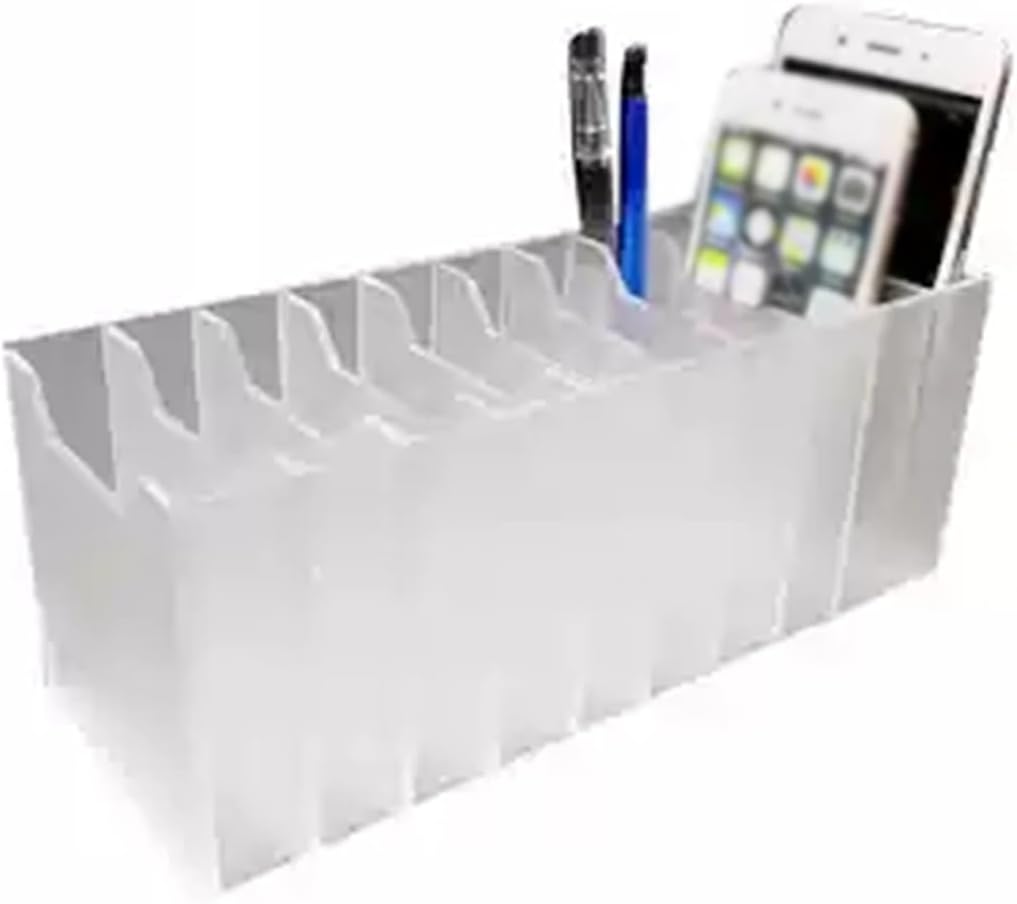 Freestanding Metal Phone Safe Deposit Organizer Box:This mobile phone storage cabinet is crafted from durable PVC material, ensuring long-lasting use and stability. Its robust construction provides excellent protection for your devices, while its strong impact resistance keeps phones safe from accidental drops. With dimensions of 9x2x10CM for each slot, this storage solution features 10 individual compartments, accommodating a wide range of mobile phone models. Designed for versatility, this mobile phone storage box offers ample space not only for phones but also for keys, wallets, and other small items. Whether you're in a school, classroom, office, factory, or restaurant, it’s an ideal solution for keeping personal belongings organized and accessible. Sharing this storage cabinet with others is effortless, making it perfect for communal environments. **Specifications:** - Product Name: Mobile Phone Storage Box - Model: 10-Grid Mobile Phone Storage Cabinet - Color Options: Available in various colors to suit your style - Material: High-quality PVC - Dimensions: 27x9x10cm - Package Includes: 1 x Mobile Phone Storage Box **Important Notes:** 1. Due to variations in computer resolution, actual product color may differ slightly. 2. Please allow for minor measurement discrepancies of 1-2cm as products are manually measured. Enhance your organization with this practical mobile phone storage solution, making it easy to keep your space tidy and your devices secure.