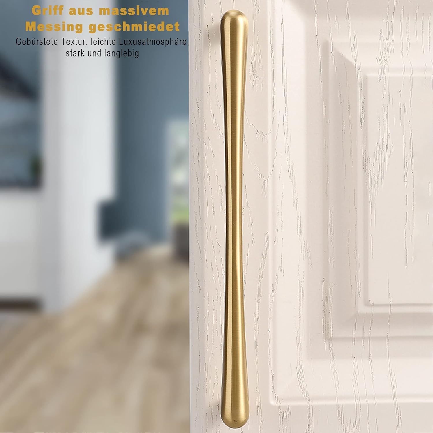 Beautiful and sturdy Golden Brushed brass handle,light and luxurious atmosphere,simple shape,long life,will not fade and rust.Installation is simple,golden Unique style it fits on your cabinets and drawers and enhances the overall look of your furniture.Detailed Parameters:Color:GoldenMaterial:BrassCraft:brushedStyle:Modern MinimalistSize:Single hole,Height:30 mm,Weight 30gHole Center 96 mm,Length 108 mm,Height 30mm,Weight 102gHole Center 128 mm,Length 140 mm,Height 30mm,Weight 131gHole Center 192 mm,Length 205 mm,Height 30mm,Weight 182gPackage Contents:10*Brass brushed Handles,screw accessoriesApplicable scene:Kitchen,Bathroom,study,bedroom,laundry roomSuitable furniture:desk,drawer,bedside cabinets,wardrobes,Wine cabinet,shoe cabinet,cabinetBest Service:1.Sends 25mm screws by default,which are suitable for normal door panels.2.Each Handles is individually packaged,beautifully designed to prevent scratches on the surface,please purchase with confidence