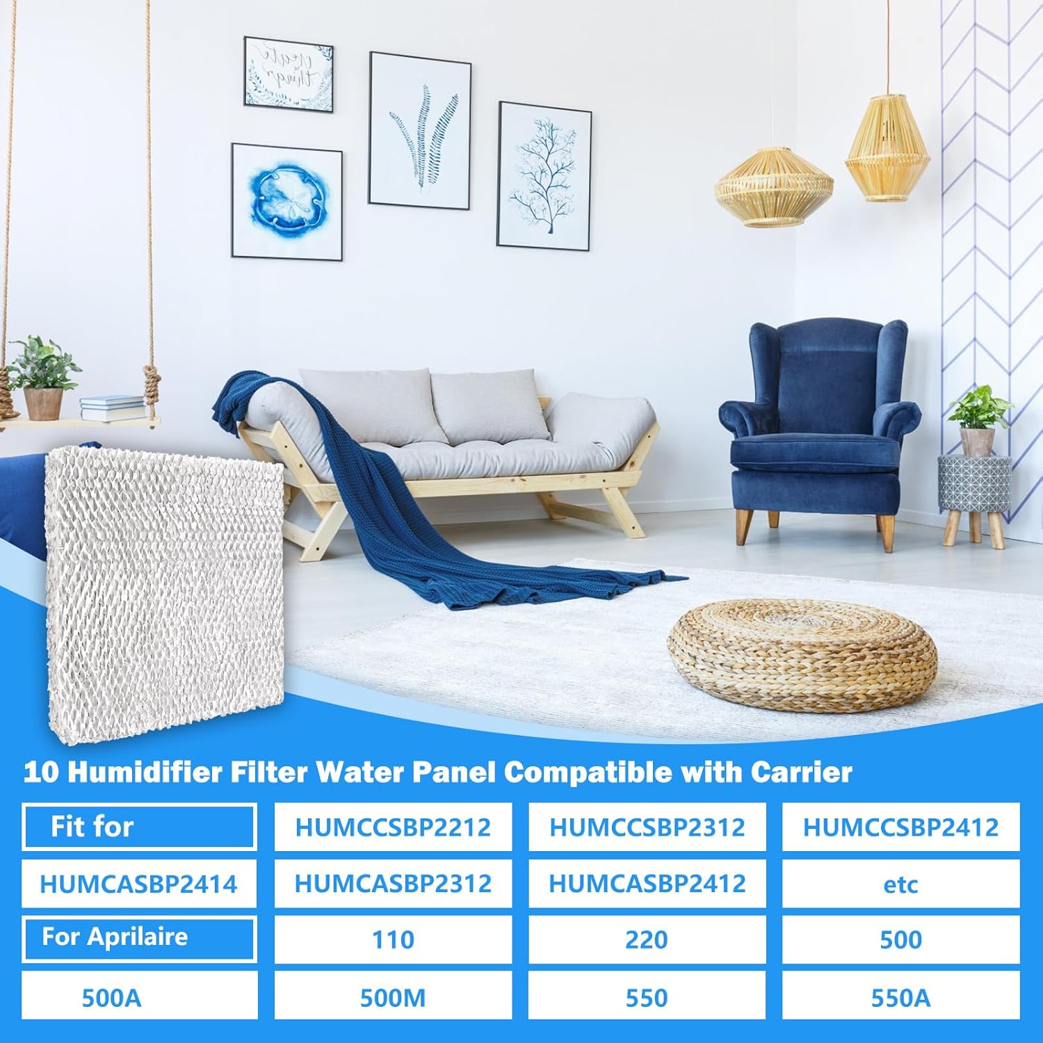 10 Water Panel Humidifier Filter Compatible with Lennox Healthy Climate HCWB3-12, HCWB3-12A, HCWB2-12, HCWB2-12A, WB-12, WB2-12A Series Humidifier, Also Applicable to Other Series of Humidifiers.Compatibility Instructions:Compatible with AprilAire Whole-House Humidifier Models 110, 220, 500, 500A, 500M, 550, 550A, 558.Compatible with Carrier HUMCCSBP2212, HUMCCSBP2312, HUMCASBP2312, HUMCCSBP2412, HUMCASBP2412 Humidifier.Compatible with Bryant HUMBBSBP2212, HUMBBSBP2312, HUMBASBP2312, HUMBBSBP2412, HUMBASBP2412 Humidifier.Compatible with Honeywell HC22P HC22P1001 HC22A1007 HC22E1003/U, HE100, HE100A, HE150, HE150A, HE220, HE225, HE220A/B, HE225A/B, HE240 Humidifier.Specification Description:Humidifier Pad: 9.44” L × 9.44” W × 1.57” DX2660 Humidifier Pad Made of Aluminum Foil Mesh with a Porous Diatom Mud Slip Coating, It Has Very Good Water Absorption Properties, The Mist Will Penetrate Every C1orner of The Home, Always Maintaining Fresh Air Quality.Pack of 2 #10 Humidifier Pad