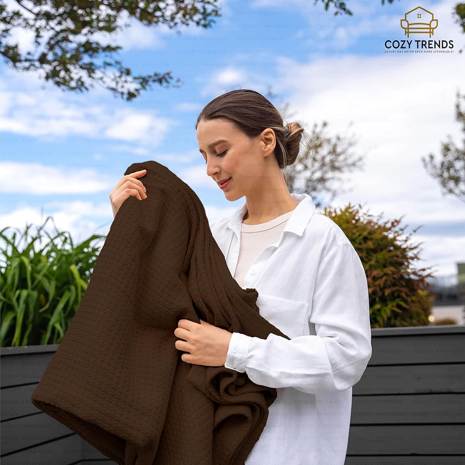 COZY AND SOFT FABRIC: Made of 100% COTTON with BASKET WEAVE for classic comfort and a modern look. ALL-SEASON COMFORT: Designed for year-round use, this blanket is soft to the touch and provides the perfect extra layering piece under your quilt or bedspread year round! ALL-SEASON COMFORT: Designed for year-round use, this blanket is soft to the touch and provides the perfect extra layering piece under your quilt or bedspread year round! EASE OF CARE - Fully Machine Washable. Tumble dry in low setting. As these blankets are made of all-natural material it is safe for use by everyone in the family. Always follow care label instructions for best results. WASH BEFORE USE. USE COLD WATER FOR WAHSING. USE ONLY DELICATE DETERGENTS. 100% SATISFACTION GUARANTEED: Customer satisfaction is of utmost importance to us. We're confident you'll love our products, but if you're not 100% SATISFIED, our customer service team will work with you to make it right!
