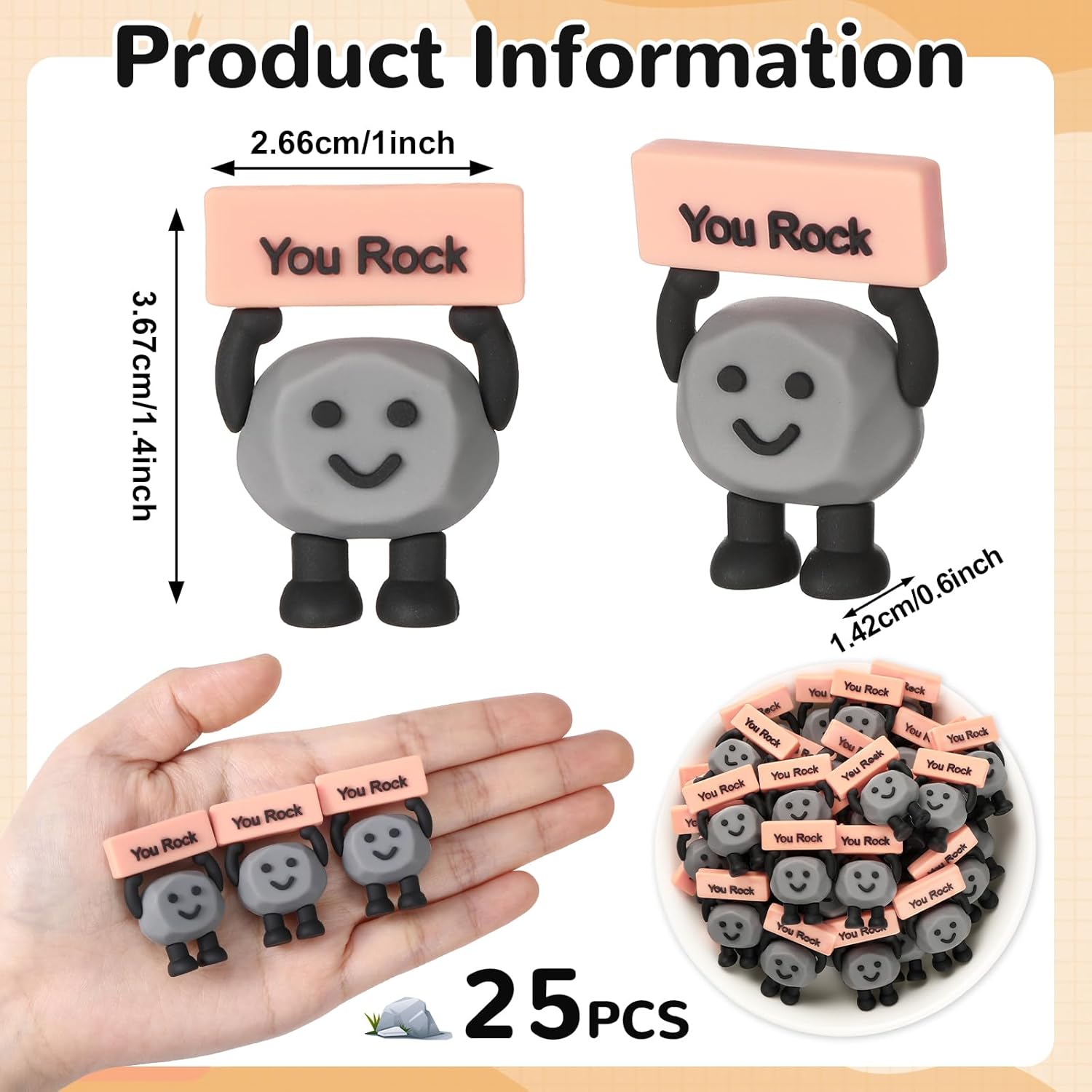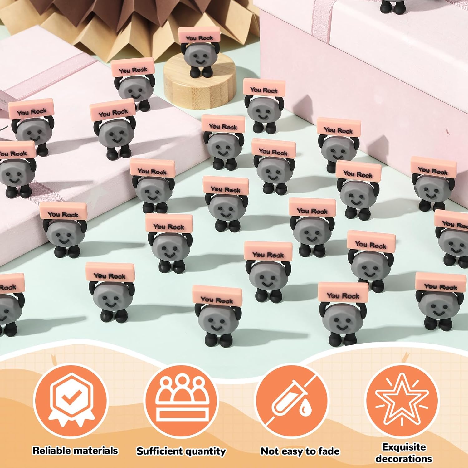 100 Pcs Mini Rubber Stone Gifts Positive Inspirational You Rock Stone Figures Bulk Motivational Decorations and Encouragement Appreciation Gift for Teacher Coworker Staff Specifications: Material: Rubber Size: 1.44×1.05×0.56 inches/3.67×2.66×1.42 cm Color: Colorful Package Includes: 100 x adorable rubber you rock stones These you rock mini stones are a fun way to spread good vibes. Picture hanging out with friends or family and leaving these little rocks as cheerful surprises. Place one on a coworker’s desk to brighten a busy day, or use them as quirky party decor that gets everyone smiling. These mini stones add a playful, heartwarming touch to any gathering and can turn an ordinary moment into something special. Whether you’re cheering up a friend, decorating a space, or sharing a quick compliment, they deliver lighthearted positivity everyone can enjoy.