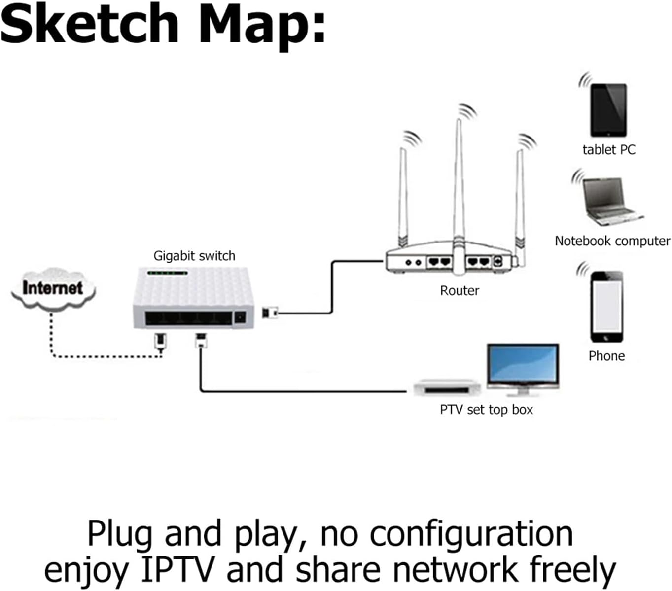 Hubs5-Port Gigabit Network Switch 1000Mbps RJ45 LAN Desktop Fast Ethernet Switching Hub Splitter with EU/US Power Adapter for Home MonitorSpecification:Model: TXE034 type: EU/USChipset: For MediaTek/MTK7530Number of ports: 5 ports 10/100/1000M automatic MDI-MDIX RJ45Standards: IEEE 802.3, IEEE 802.3u, IEEE 802.3x, IEEE 802.3abInternet media:10BASE-T: UTP 3, 4, 5 Cat cable (up to 100m)100BASE-TX / 1000BASE-T: UTP Category 5, 5e or above cable (up to 100m)Data rate: 10/100/1000MForwarding rate: 148,800 Pps at 100MWorking temperature: 0~40℃Relative humidity: 10%~90% (no condensation)Storage temperature: -40℃~70℃Relative humidity: 5%~90% (no condensation)notes:1. Due to differences in monitors and light effects, the actual color of the item may be slightly different from the color shown on the picture. Thank you!2. Please allow 1-3 mm measurement deviation due to manual measurement.1 desktop switch1 power adapter