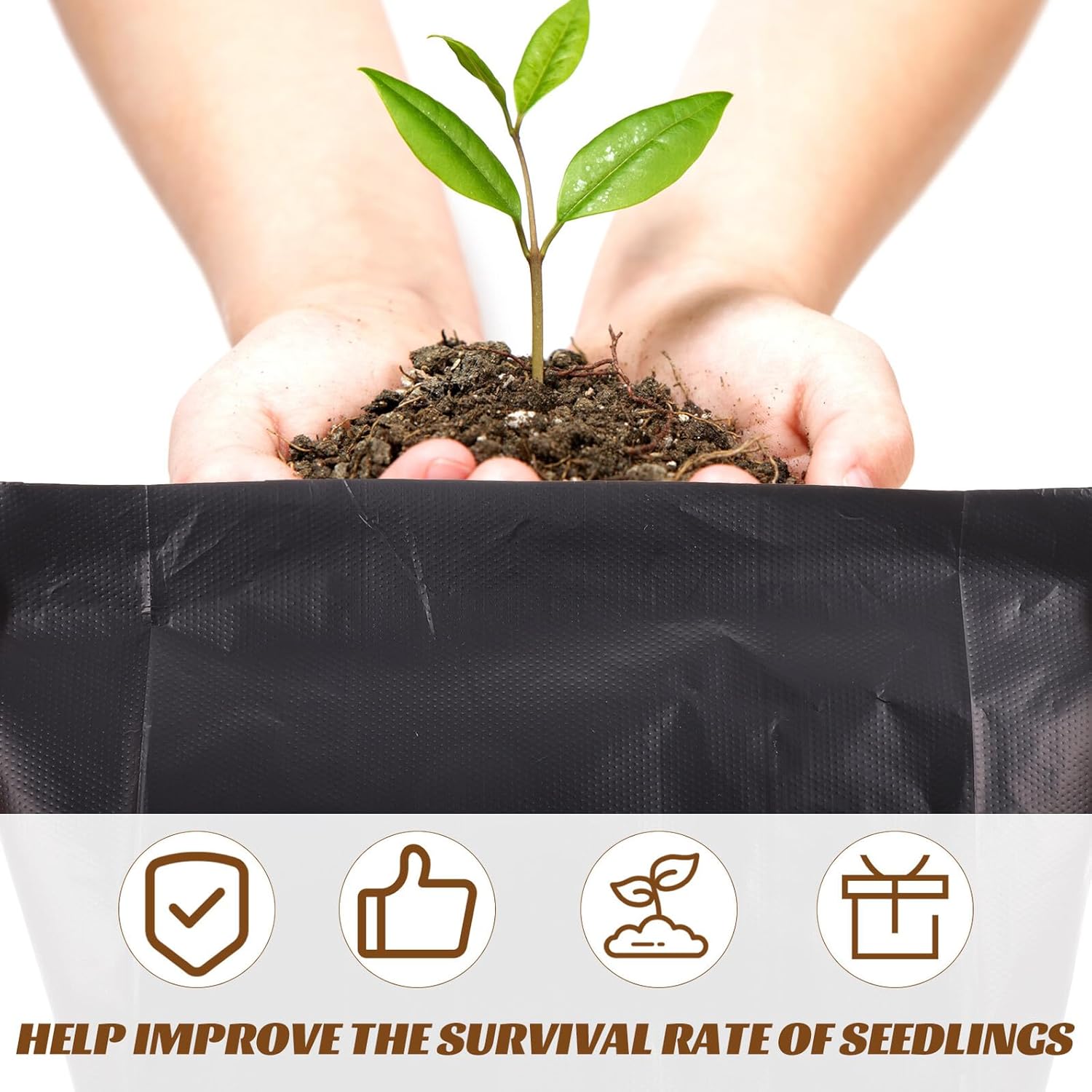 Package Include planting bags Characteristics -Material: PE -Color:Black -Product Info:Seedling bag - Size: 31.00X15.00X0.10cm/12.18X5.89X0.04in - Great at growing plants,can promote roots and keep optimal content small grow bags. - The plants nursery pots bags also help to prevent the root from rotting and water loss reusable planting bags. - Breathable planting bags prevent excess watering and promote healthy root formation for your plants nursery grow bag. - Suitable for growing potatoes, carrots, tomatoes, flower, , and vegetable plants and more plastic grow bags. - The PE material allowing for faster plant growth through better access to oxygen, easy to use.Goods Descriptionpe grow bags With suitable size to grow various kinds of plants or hold small items.bags for planting Fine workmanship, ensures the plant grow bag practicality.plants bags These plant grow bags are practical, safe and durable for long servicing time.reusable planting bags It has high durability, plant grow bag is not easy to deform