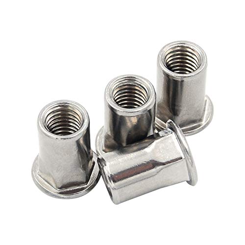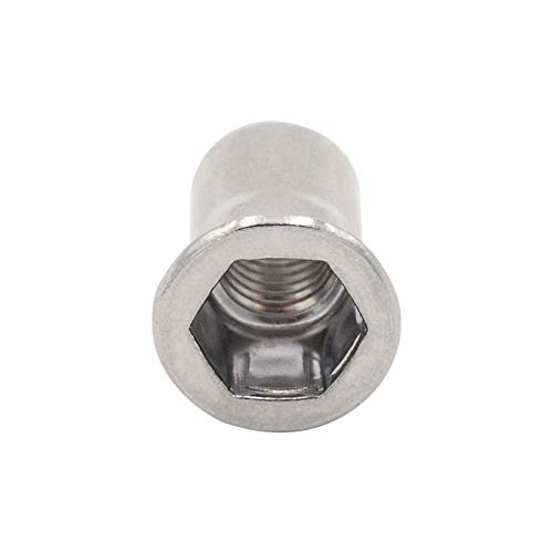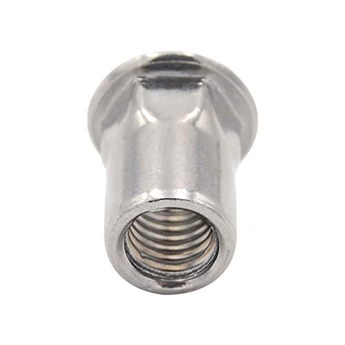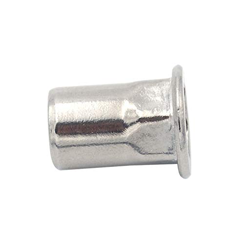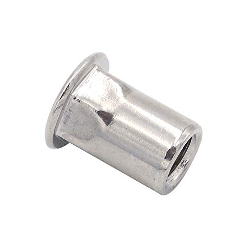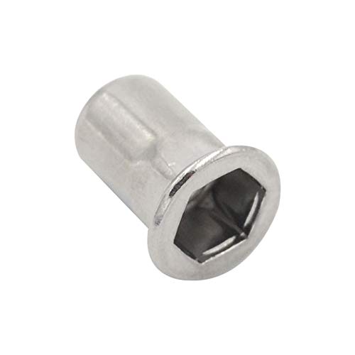100pcs Stainless Steel Flat Head Semi Hex Open End Rivet Nuts M3/M4/M5/M6/M8/M10/M12Specifications:Material: Stainless SteelHead Type: Flat HeadRivet Nut Type: Flat Head Semi Hex Open EndSize: M3 M4 M5 M6 M8 M10 M12Features:A Rivet Nut fastener is a tubular rivet with internal thread which can be installed in seconds form one side of the work. Once installed, no finishing work is required on the RIVNUT fastener.Rivet Nuts also are used when an application has little or no access to the backside as they can be installed from the front side of the work piece.The added benefit of not only being a dependable fastener, they are ready to use with clean threads available for screw attachments.Made of carbon steel, high-strength, load-bearing threads; with zinc plated finish,Rust and corrosion resistantSuitable occasions such as in medicine beverage food chemical industry, air conditioning, fire fighting, gas, etc.Package Content:100Pcs Rivet Nuts