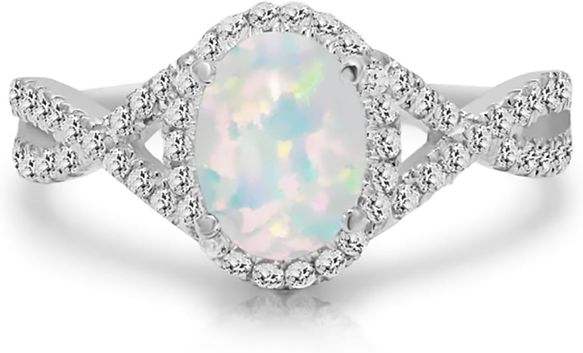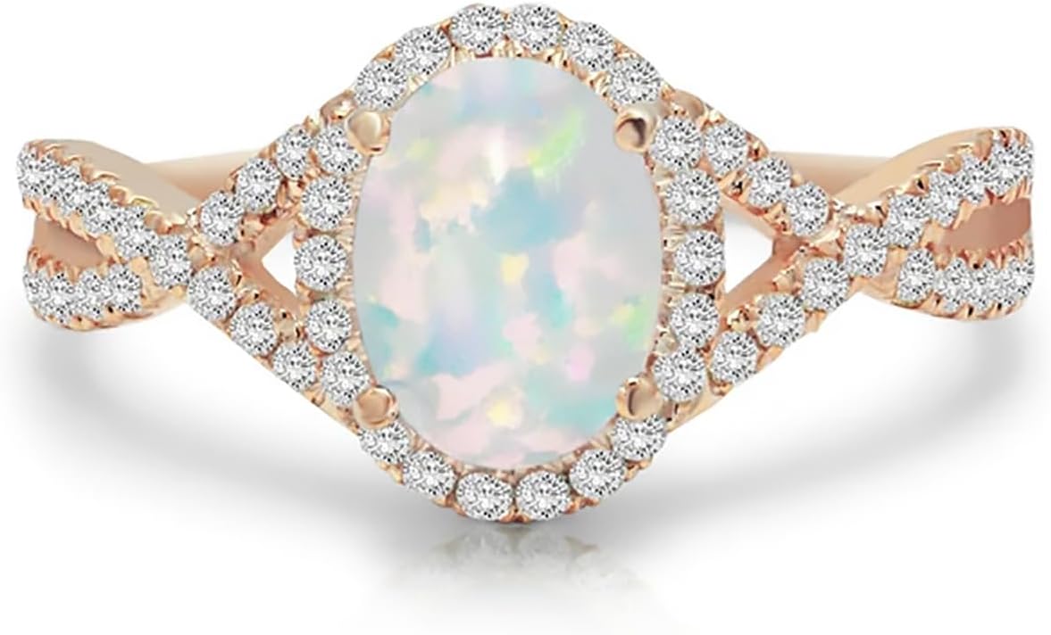 10K 14K 18K Gold Opal Infinity Engagement Ring for Her Women, 1 Carat Center Oval-cut White Opal Ring Jewelry Gift for Anniversary Wedding