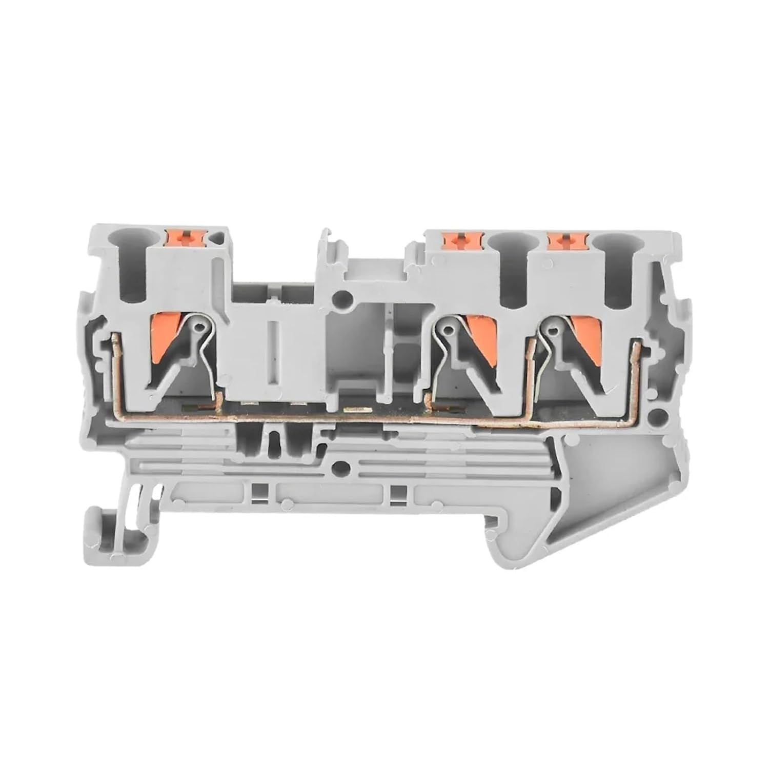 Ground Circuit Terminal Blocks10Pcs PT 2.5-Twin Din Rail Terminal Block 3 Conductors Push In Spring Screwless Feed Through Wire Conductor Wire Connector