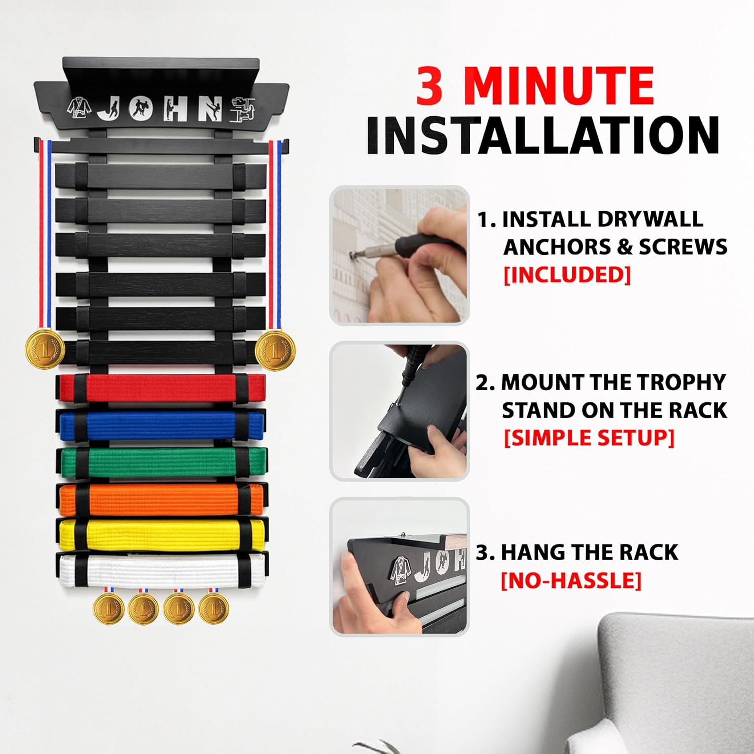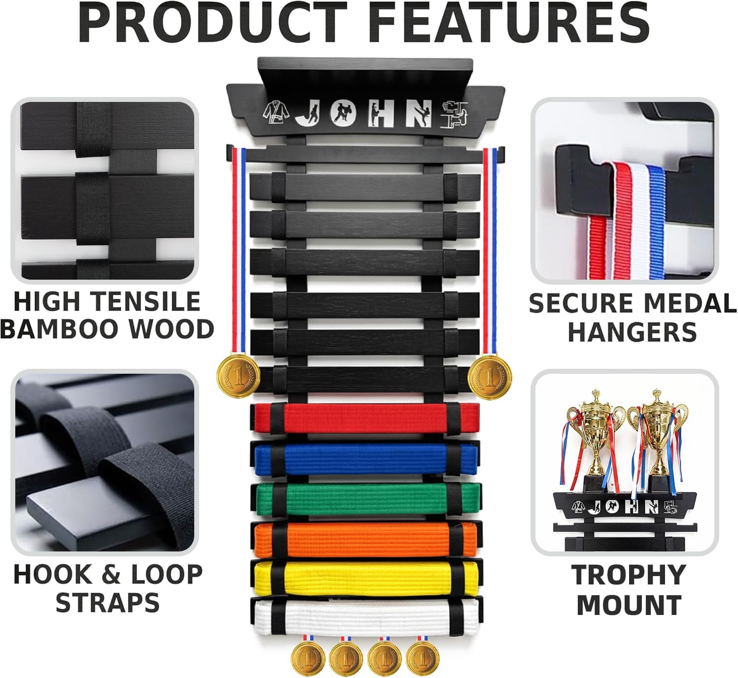| Model Name | Belt Display Rack with Trophy Mount |