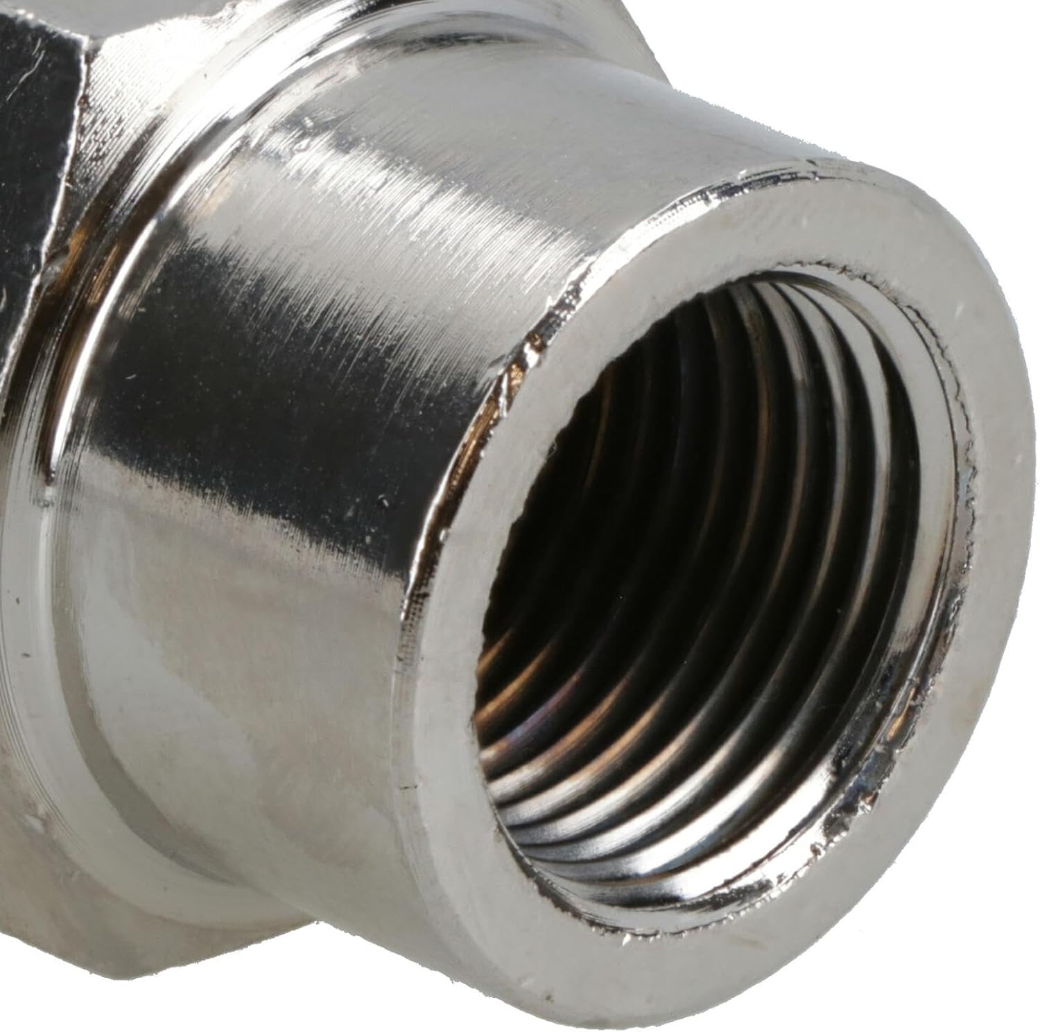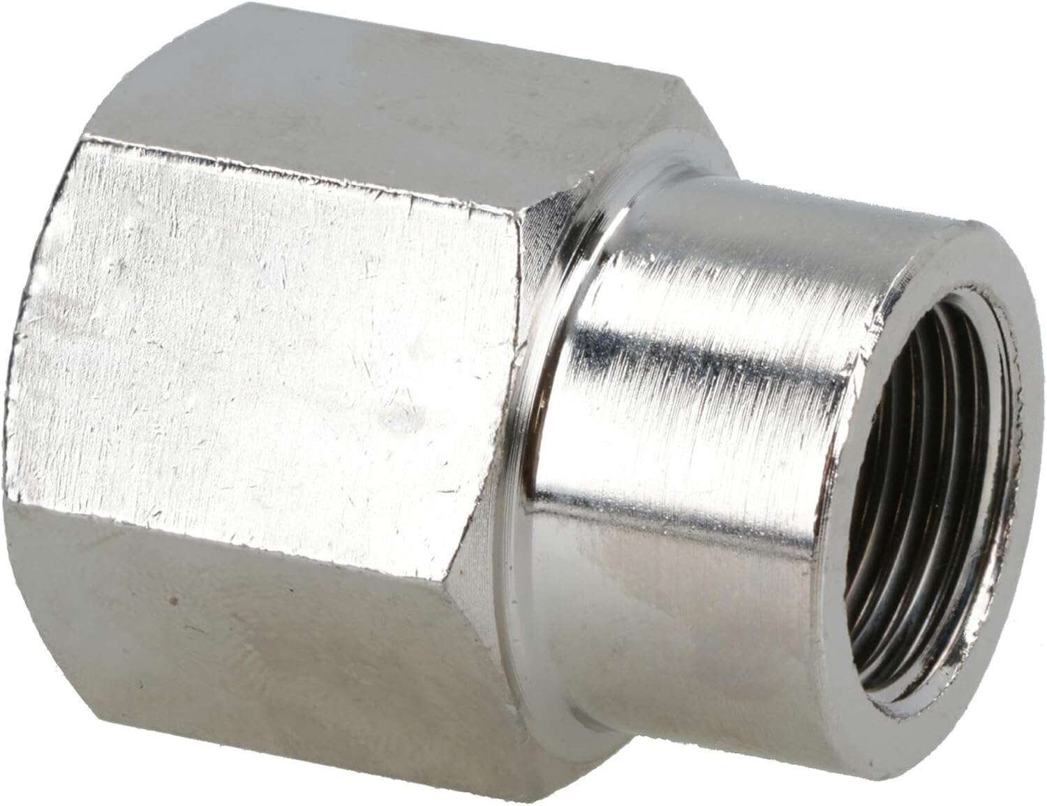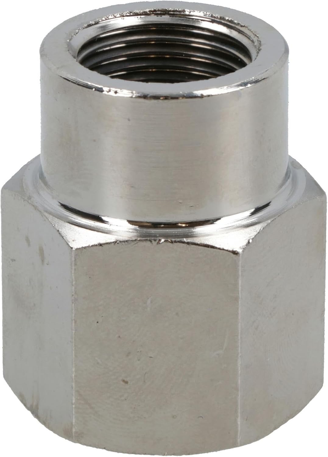 This is a pack of 5 fittings. Female threaded reducing socket. Ideal for joining and adapting air hoses to compressors etc. 1/2" BSP to 3/8" BSP. Hex to help tightening. Zinc Plated for corrosion protection. Please note. BSP thread sizes do not refer to the overall diameter of the thread. 1/2" BSP is approx. 20.5mm overall diameter and 3/8" BSP is approx. 17mm overall.