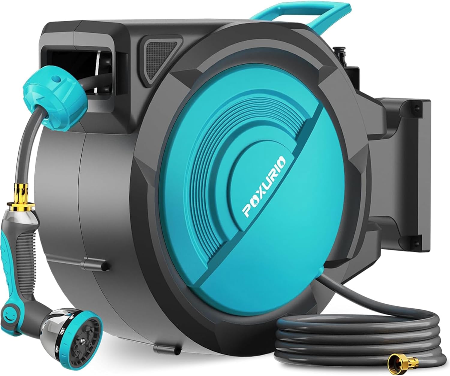 1/2 in x 150 ft Retractable Garden Hose Reel, Wall Mounted Automatic Hose Reel with Upgraded 10 Pattern Nozzle/Any Length Lock/Slow Return System/180°Swivel Bracket, AquaBlue
