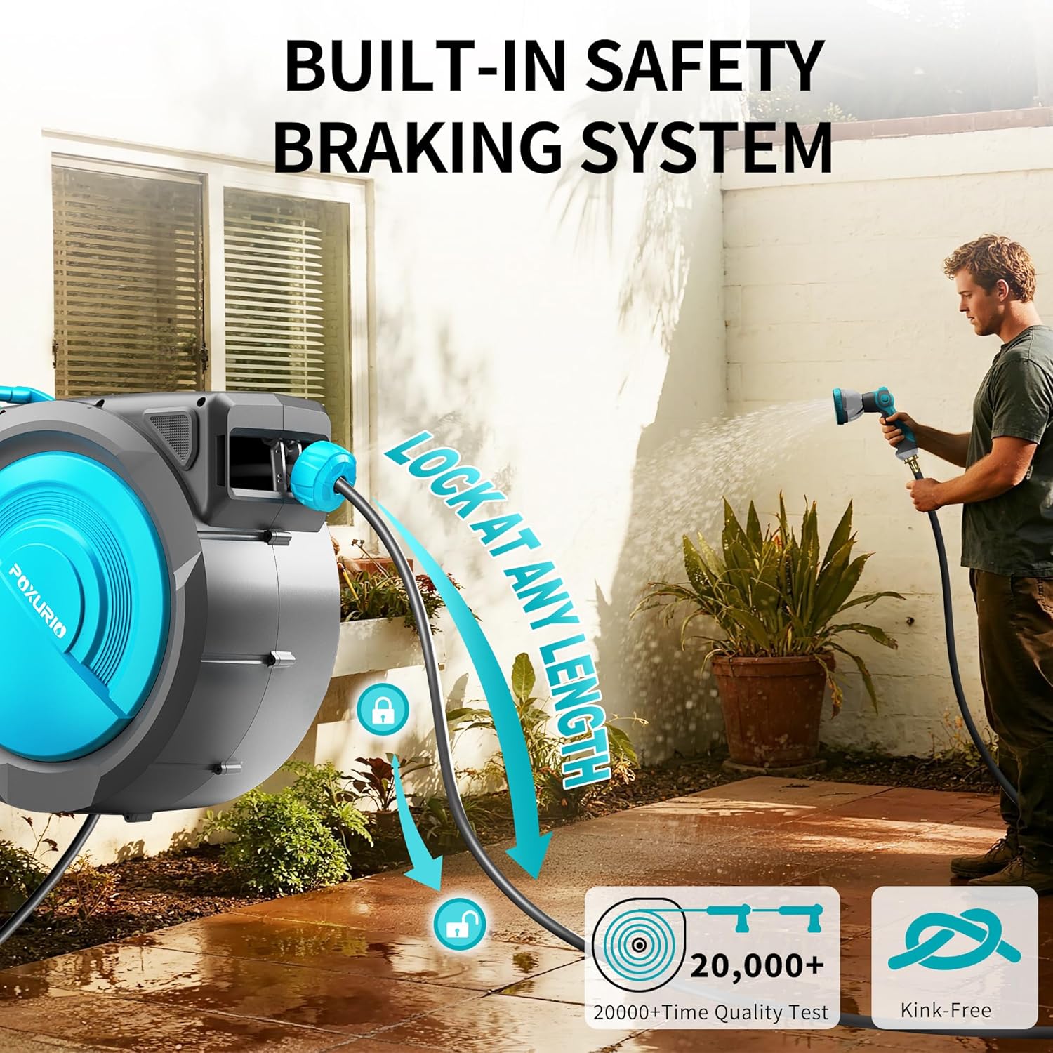 • [Automatic Function]: When in use, pulling the hose can adjust it to your desired length, and it will automatically lock in place, making it very convenient. If you want to extend it further, just continue pulling out the hose. After use, gently pull the hose reel, and it will slowly retract automatically