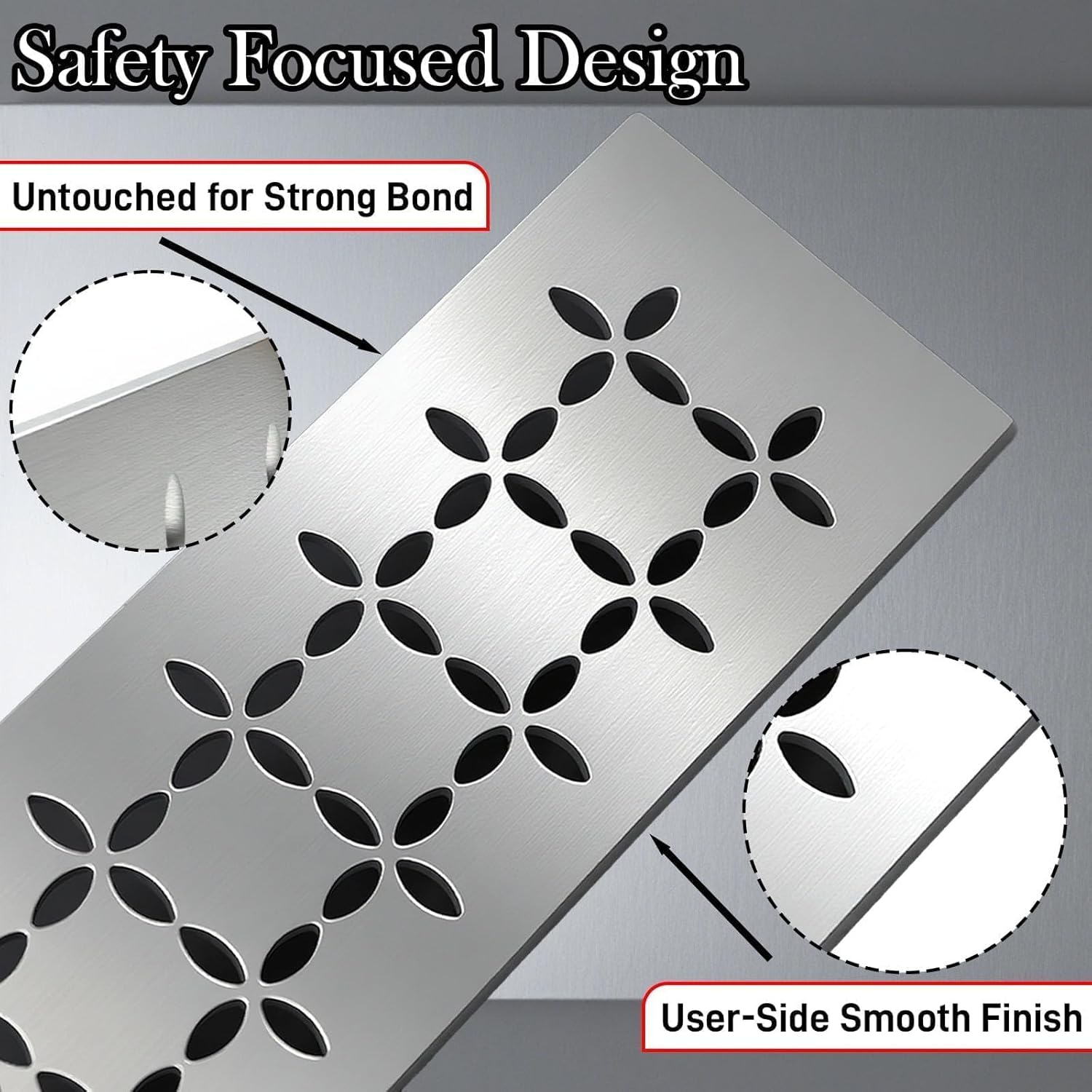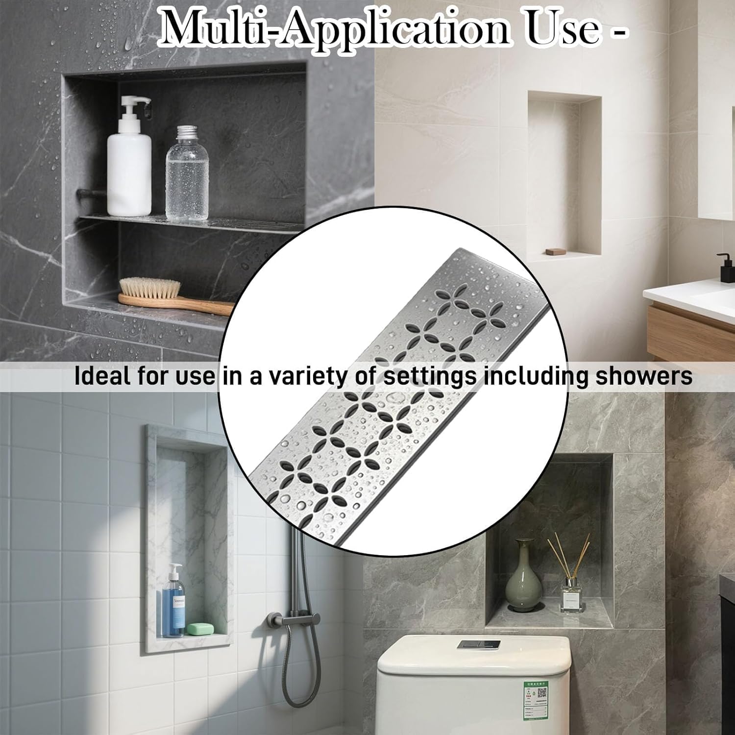Experience the perfect blend of safety and innovation with Hxszk's shower niche shelves, featuring our exclusive recessed drainage design that sets us apart from flat-surfaced competitors. Each shelf in this value-packed 2-pack set showcases a beautifully crafted floral pattern with strategically recessed edges that actively guide water away, preventing the pooling common with ordinary shelves. We prioritize your safety with specially polished outer surfaces that are completely smooth to the touch, eliminating any risk of cuts or scratches during installation and daily use. While the outer face receives meticulous hand-finishing for both safety and aesthetics, the inner side may show minor manufacturing traces from precision laser cutting—ensuring all functional surfaces remain perfectly safe and refined. Crafted from 4mm thick 304 stainless steel, these shelves offer exceptional durability in humid environments. Perfectly compatible with Kerdi Board SN/-SNLT prefabricated niches, they fit 12 inch tile and 1/8 inch grout lines precisely. The 2-pack configuration provides excellent value for multiple installations. Choose Hxszk for shelves that combine intelligent water management with guaranteed safety—where every visible edge is polished to perfection for your peace of mind.