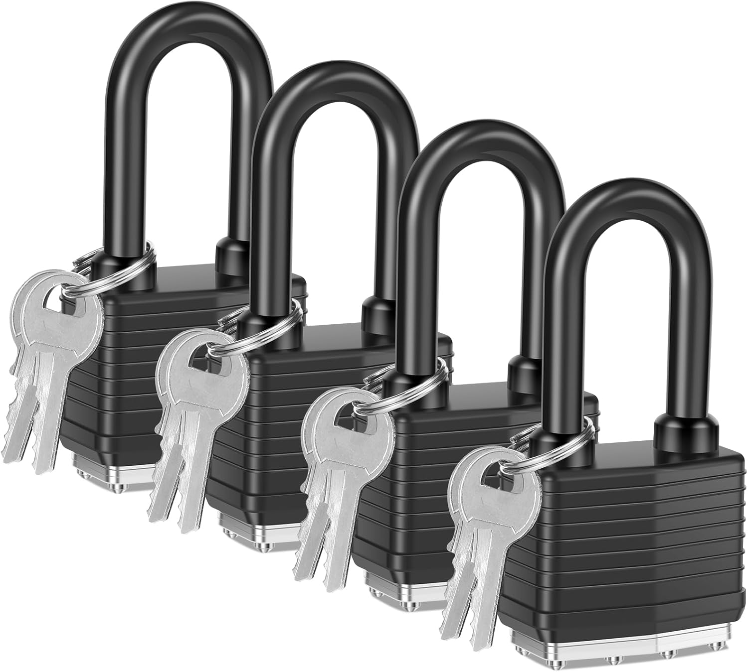 Parts List:12×Lock24×KeyDescription :This water resistant outdoor padlock features a waterproof design suitable for outdoor use . Its laminated steel exterior resists external impacts and is strong . Suitable for doors , garage , lockers , and more .Features :【Easy to Use】This outdoor padlock is water resistant and easy to use , providing outdoor protection.Specification :Product Name : Water Resistant Outdoor PadlockMaterial : Copper + PVCSize : 100×50×30 mm / 3.94×1.97×1.18 inchInner beam size : 42 mm / 1.65 inchNote :1. There may be slight differences between the picture and the actual color of the commodity . We will try our best to show you the exact color .2. Please allow slight dimension differences due to manual measurement .