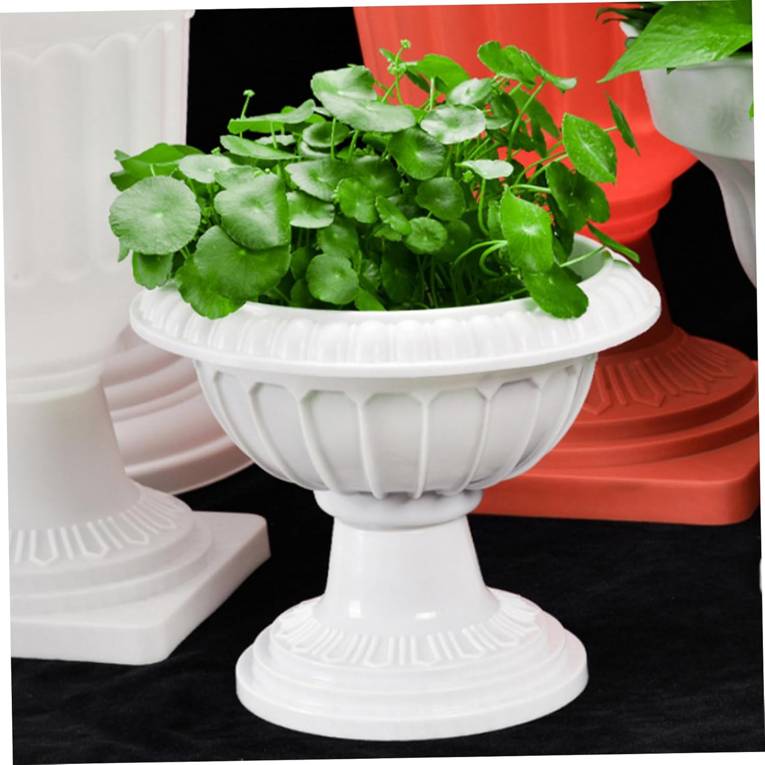 Description: Elevate your garden or porch decor with our 12Pcs Urn Planter set, featuring a stylish pedestal design. These lightweight and safe plastic planter are perfect for both hydroponic gardening and traditional planting methods. Their elegant appearance adds a touch of sophistication to any outdoor space, whether displayed on a patio, garden, or entryway. Each urn is detachable for easy maintenance and customization, allowing you to create beautiful arrangements that suit your aesthetic. Constructed from stable materials, these planter are designed to withstand various weather conditions while providing a secure environment for your plants to grow. Transform your outdoor area with these versatile and attractive urn planter! Features:. Urn Planter. -Color: white. -Material: plastic. -Size: about 14x16 cm/5.51x6.30 inch. Note: Manual measurement, please allow slight errors in size. The colors may exist slight difference due to different screens. Package Including 12 x Urn Planter