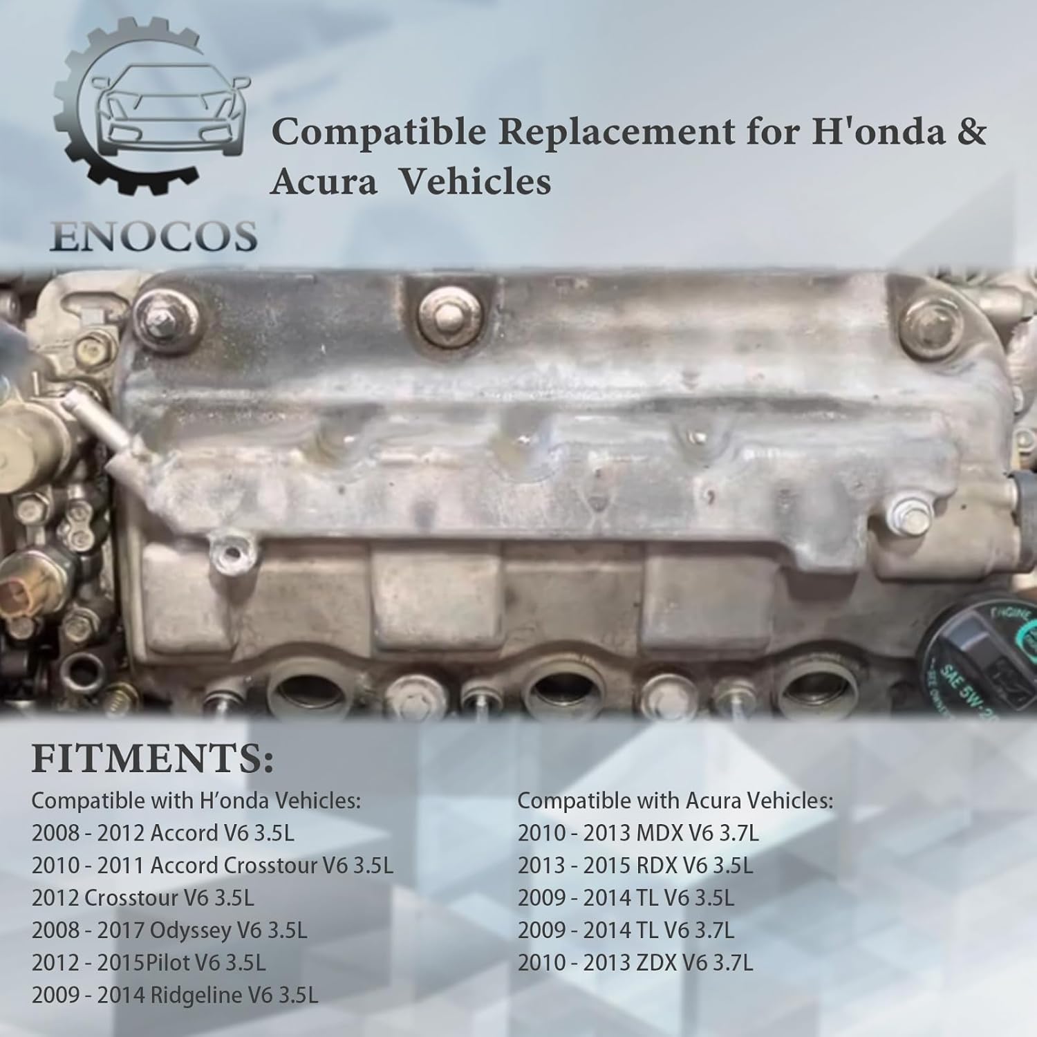 Compatible with Acura Vehicles: 2010 - 2013 MDX V6 3.7L 2013 - 2015 RDX V6 3.5L 2009 - 2014 TL V6 3.5L 2009 - 2014 TL V6 3.7L 2010 - 2013 ZDX V6 3.7L Compatible with H'onda Vehicles: 2008 - 2012 Accord V6 3.5L 2010 - 2011 Accord Crosstour V6 3.5L 2012 Crosstour V6 3.5L 2008 - 2017 Odyssey V6 3.5L 2012 - 2015Pilot V6 3.5L 2009 - 2014 Ridgeline V6 3.5L