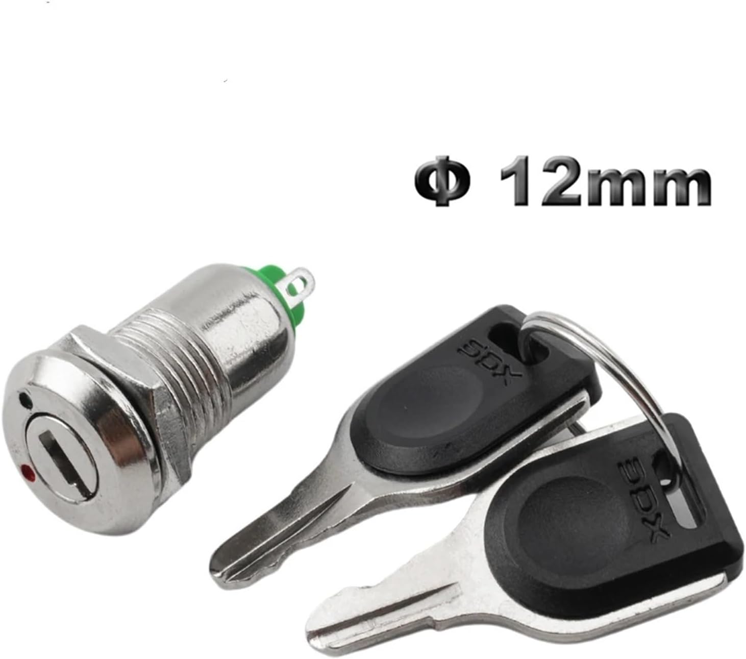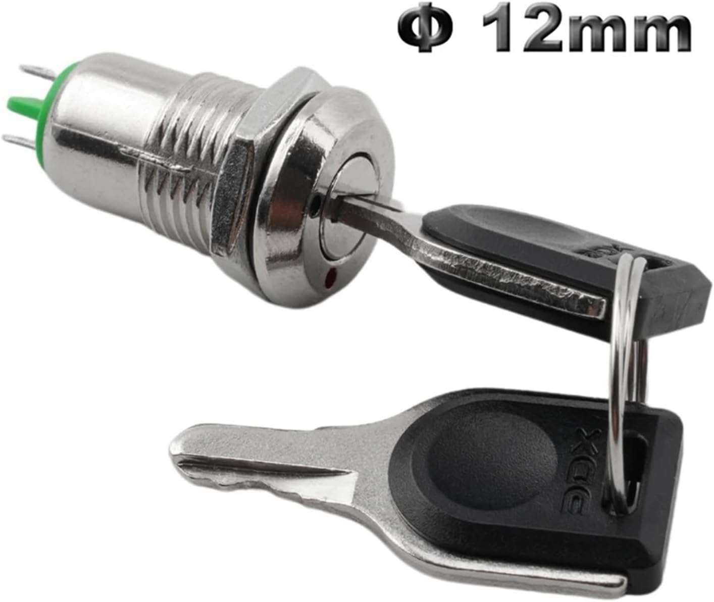 Key Switch==========Current : 2AMaterial : AlloySwitch Type : Key SwitchFeatures : 2 positionItem Type : SWITCHESIs Smart Device : NoOrigin : Mainland ChinaCertification : RoHS,CEMounting Hole Diameter : 12mmRating : 2A/220VACOperation Type : LatchingMaterial : Zinc alloy, PlasticContact Configuration : 2 positionPin Type : Solder Pin