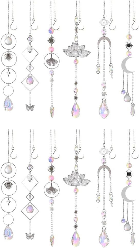 Feature:【Decorative Suncatcher】This decorative hanging crystal suncatchers kit contains six uniquely designed suncatchers, skillfully combining moon and sun metal frames, sparkling clear crystal balls and drop strings, each of which can decorate your space.【Meticulously Crafted】The crystal ball has a unique shape and cutting surface due to the unique cutting process. These crystal prism hanging suncatchers capture light from each surface and reflect it when sunlight or other light hits them, adding a splash of color to the space.【Convenient Hanging】The sun catcher is equipped with hooks to easily adapt to a variety of hanging needs. Whether it's on a wall, door or window, or anywhere else, it can be hung at will.【Versatile Colors】Providing gold and silver two classic colors, the colorful sun catchers decorative hanging are not only easy to integrate into a variety of home decorating styles, but also in different light conditions reflect a variety of colors, adding a touch of personalized style for your home environment.【Multi-functional】This suncatcher kit can not only be used for indoor and outdoor window decorations at home or in the classroom, but also can be used as a hanging crystal sunshade for car mirrors. In addition, these hanging crystals can also be used as hanging decorations for birthdays, weddings, anniversaries and other special occasions, adding a touch of sparkle and warmth to your important moments.Specification:Name: Sun CatcherMaterial: CrystalColor: Gold, Silver(Optional)Package Included:12 * Sun Catchers