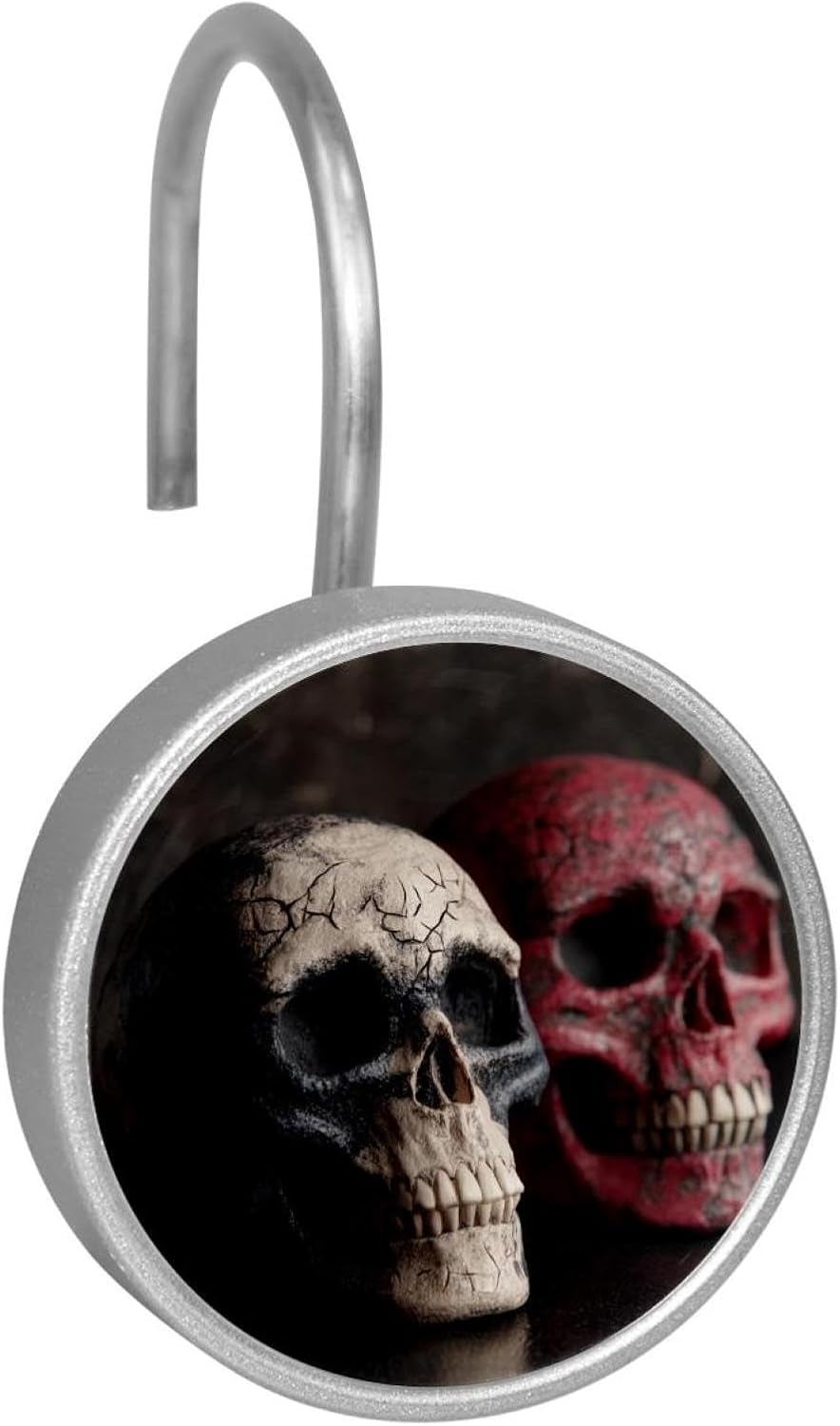 MATERIAL: glass, stainless steel. These shower curtain hooks can be decoration bathroom and will be long-lasting.12 pieces of shower curtain hooks, round crystal glass decoration, printed patterns, silver hooks to match various styles of bathroom shower curtains. SIZE: Crystal glass diameter of round shower curtain hook is 1.45x1.45in/ 3.7x3.7cm. The shower curtain hooks diameter is about 1.1in, 12 pieces shower curtain hooks are suitable for rod of 8-28mm(0.3"-1.1"). RUST RESISTANT:Shower hooks are made of stainless steel and crystal glass, which is durable, rust-proof and corrosion-resistant, it will not rust suitable for wet bathroom environment. EASY TO INSTALL:Hand the shower curtain hooks hold securely on straight or curved shower curtain rods,slid easily and smoothly. Easy to install and decorate your bathroom. BEAUTIFUL AND ELEGANT:Beautiful Love hook add charming scenery for your bathroom, baby room, bedroom, living room, and the gorgeous style is easy to match with any kinds of bathroom shower curtain. EASY GLIDE: Open and close your shower curtain quickly and easily with the Shower Hooks, easily glides on shower curtain rods and tension rods. No snagging; no effort; no hassle PACKAGE: 12 shower curtain hooks in a pack.The bathroom curtain hook has a smooth appearance and can be hung on the pole to pull it at will. Special price 12 sets to meet your needs.