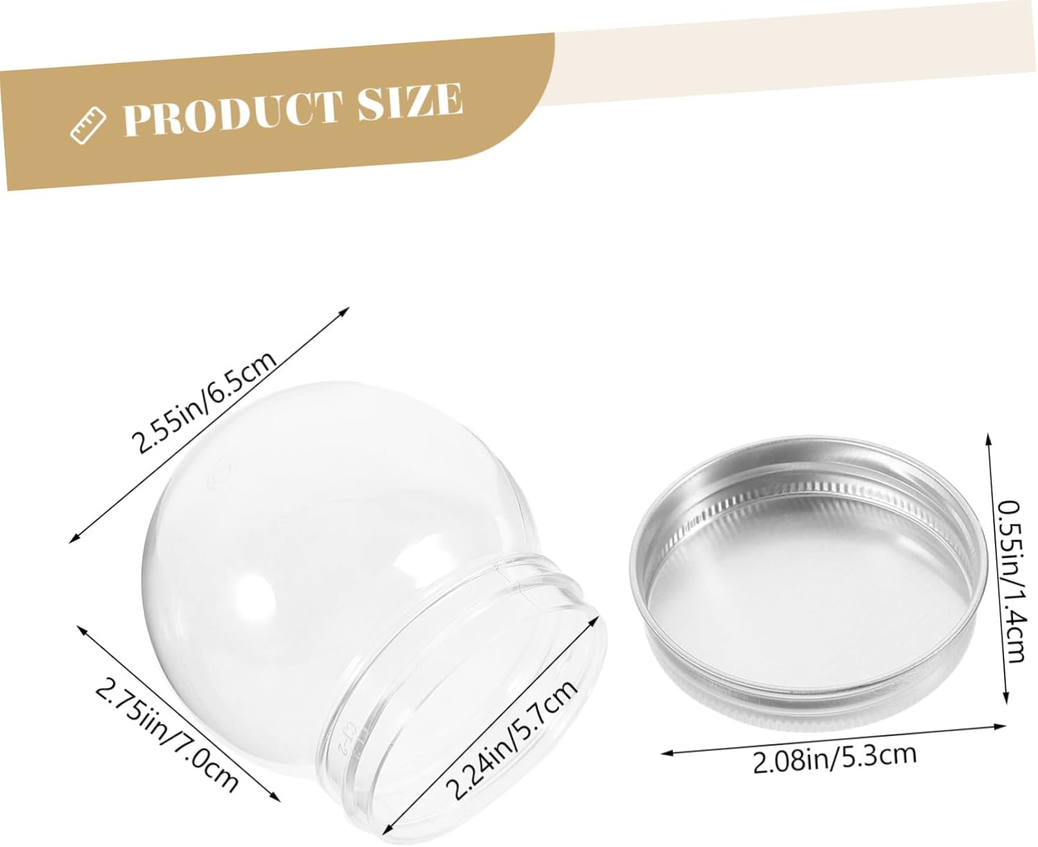 Package Include 12 x Candy Bottle Characteristics -Size:5.70X5.70X1.50cm/2.24X2.24X0.59in(aluminum lid) simple snow globe -Capacity:150ml snow globe make your own -Size:7.00X6.50X6.50cm/2.75X2.55X2.55in(globe) candy favor container -Color:Transparent plastic snow globe for craft -Size:5.30X5.30X1.40cm/2.08X2.08X0.55in( ) clear candy containers -Material:Aluminum lid, plastic make snow globe - Can be used to hold candy, chocolate, treats, also crafts beads and other small items plastic snow globe diy. - Suitable for various occasions, such as wedding, birthday parties, etc. Can be applied , dessert shop, restaurant, and etc DIY snow globe kit. - Made of stable and reliable material, it is smooth and transparent, and has bright colors sweets tubs. - It is suitable for personalized weddings, birthdays, festival celebrations and other occasions. It can also be used for small stationery such as small erasers snow globe diy. - Great craftsmanship, delicate shape, good texture, beautiful look, fashionable and unique DIY snow globe.Goods Informationcandy jars containers want practical and portable packing containers? Our anti-leak design Bottles can meet your needs.snow globes DIY Come with lid design, the bottles will be sealed, .plastic snow globe jars They are perfect for storing snacks,