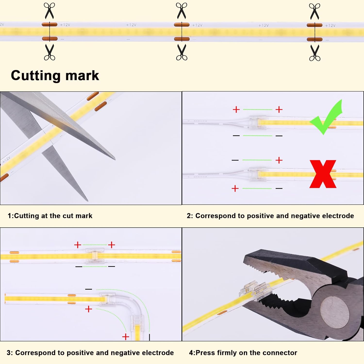 | Included Components | 1 Pcs 2m cable Touch Controller, 1 Pcs AC 100V-130V to DC 12V 100W Power supply with 1.5m cable US Plug, 1 Roll of 32.8ft COB LED Strip Light 8mm Wide, 10 Pcs 2m Connecting Cables and 1 Pcs Sample, 10 Pcs 8mm Wide Connectors |