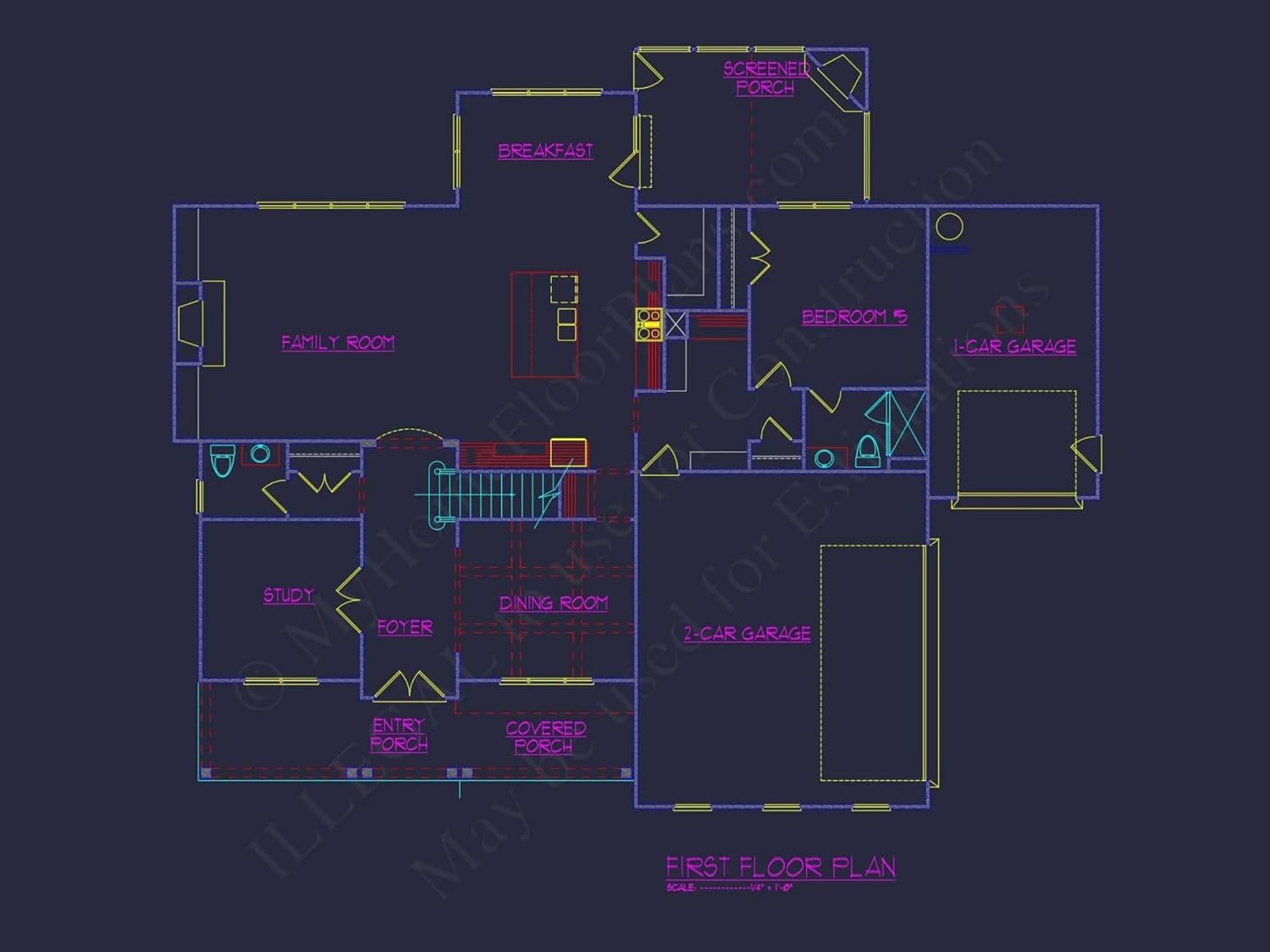 Width: 71′-0″Depth: 58′-4″Htd SF: 4,065Unhtd SF: 2,134Elegant 3-Story Traditional House Plan with Timeless StyleExplore this 3-story traditional home with 4,065 heated sq. ft., 5 bedrooms, 4 baths, and a versatile floor plan—includes CAD files, attic rec room, and side-entry 3-car garage.This traditional-style house plan blends sophisticated curb appeal with a smart, livable layout. Perfect for modern families, builders, and design enthusiasts alike, the plan offers open living spaces, flexible rooms, and detailed architecture.Key Features of the Home PlanLiving Areas - Heated & UnheatedHeated area: 4,065 sq. ft. across three well-designed stories.Unheated extras: Screened deck, attic storage, and 3-car side-entry garage.Bedrooms & Bathrooms5 spacious bedrooms including a main-level Owner Suite with walk-in closet.4 full bathrooms—strategically placed for privacy, comfort, and convenience.Interior HighlightsVaulted ceilings elevate the space with airiness and drama.Open floor plan seamlessly connects the kitchen, dining, and family room. See similar layouts.Kitchen island and walk-in pantry for culinary ease.Fireplace in the family room adds cozy ambiance. View fireplace plans.Upstairs laundry near bedrooms for added convenience.Bonus playroom and attic rec space for flexible use.Private office ideal for remote work or study.Garage & Storage DetailsGarage Bays: 3-car garage with side-entry configuration.Garage Type: Attached, with direct interior access via mudroom.Storage: Attic space, walk-in closets, mudroom cubbies, and under-eave options.Outdoor Living FeaturesScreened deck for all-season outdoor entertaining.Covered front porch welcomes guests with classic charm.Exterior finishes include siding, brick, and stone for lasting curb appeal.Architectural Style: Traditional with Craftsman InfluencesThis design blends classic materials like brick and stone with