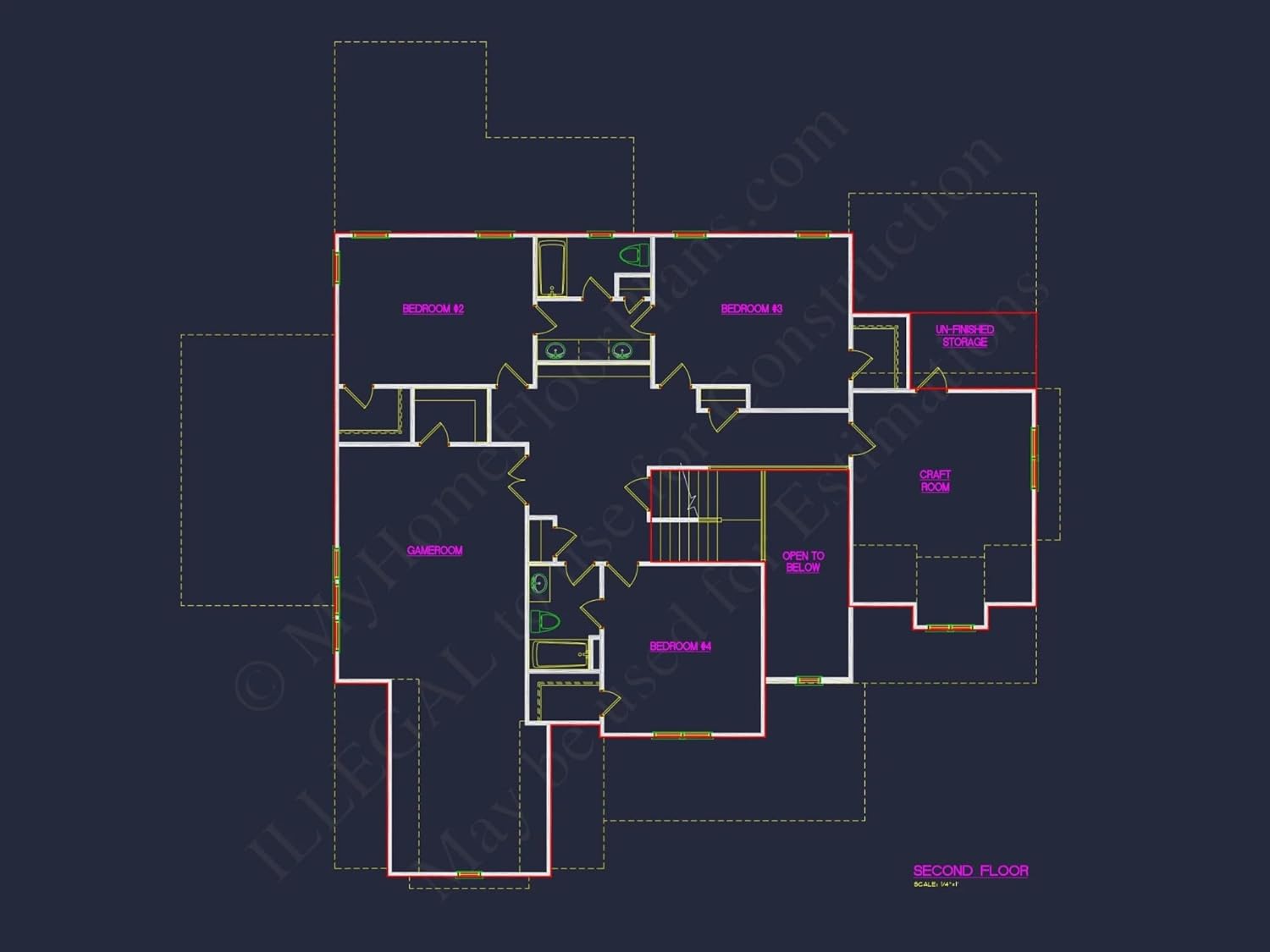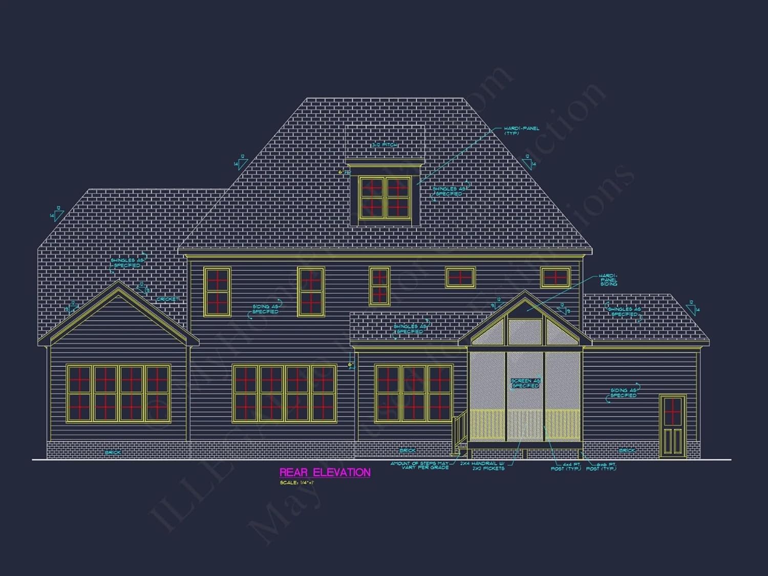Colonial Farmhouse House Plan with 5+ Baths and Bonus RoomExplore this beautifully designed Colonial Farmhouse house plan featuring 4 bedrooms, 5+ bathrooms, a screened porch, bonus room, and vaulted ceilings—includes CAD files and full blueprints.This Colonial Farmhouse house plan offers a perfect mix of comfort and functionality. Designed for modern living, it delivers timeless charm and smart space planning.Key Features of the Home PlanLiving Areas - Heated & UnheatedHeated area: 4,291 sq. ft. across 2.5 stories.Unheated extras: Screened porch, covered front porch, paved patio, 3-car garage.Bedrooms & Bathrooms4 bedrooms, including a luxurious Owner Suite on the main floor for ultimate privacy.5+ bathrooms, including Jack and Jill setups and additional powder rooms for guest convenience.Interior HighlightsVaulted ceilings enhance the spacious feel of the open interior.Open floor plan seamlessly connects the kitchen, great room, and dining areas. Explore open concept plans.Fireplace in the great room offers a cozy focal point. See more plans with fireplaces.Butler's pantry and walk-in pantry enhance kitchen functionality. Discover pantry-equipped homes.Bonus room for recreation, hobbies, or a home office.Mudroom with built-in storage keeps clutter at bay. See mudroom-friendly plans.Garage & Storage DetailsGarage Bays: 3-car split garage with side entry for curb appeal and convenience.Garage Type: Attached, with side-load configuration.Storage: Ample closets throughout, walk-in pantry, bonus room storage, mudroom cubbies.Outdoor Living FeaturesCovered front porch for inviting curb presence and casual seating.Screened-in rear porch—ideal for year-round outdoor enjoyment. Browse more screened porch plans.Paved rear patio for grilling, outdoor dining, or entertaining.Architectural Style: Colonial FarmhouseThis