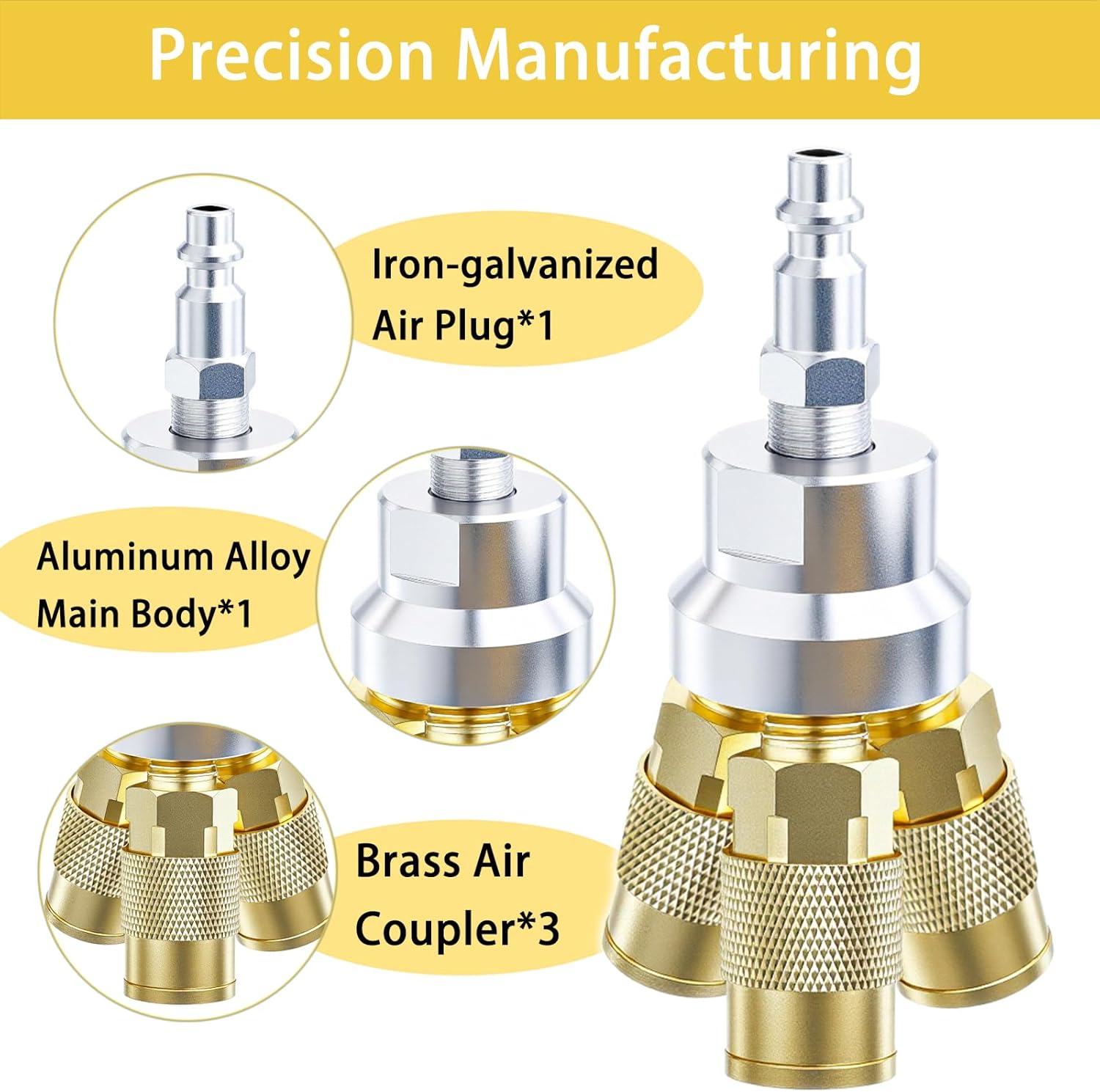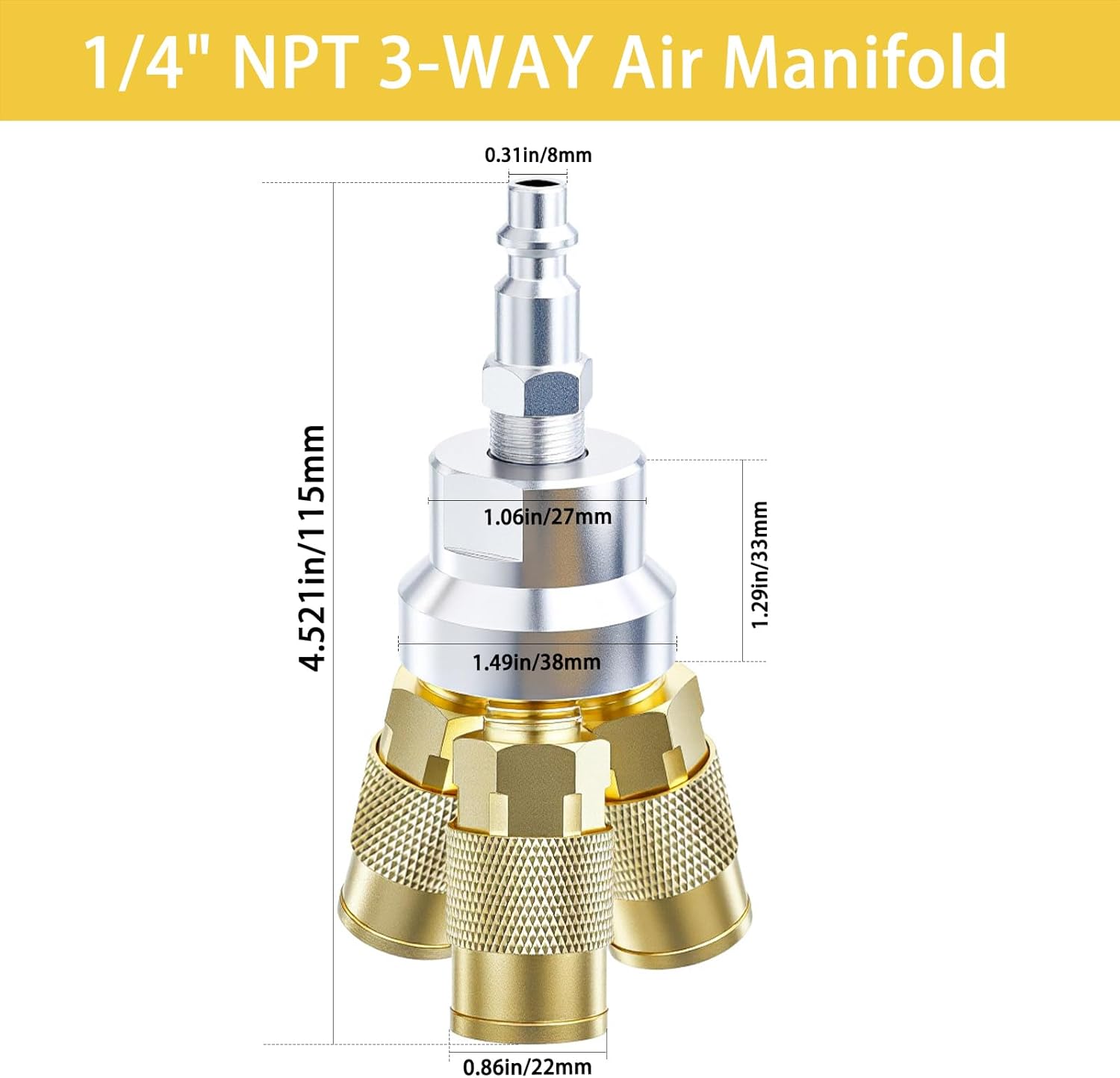 Milosline 1/4" NPT 3-Way Air Manifold and Polyurethane Recoil Air Hose