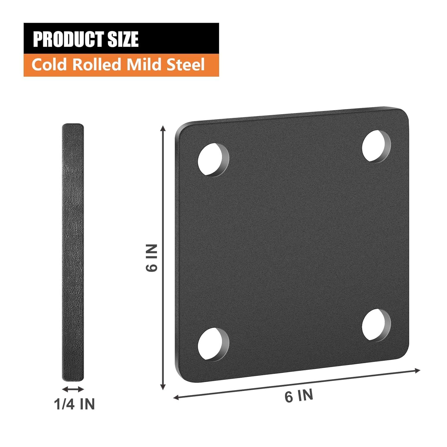 SALUINOKI 1/4 Square Steel Plate Base 6x6 for Tile, Hot Rolled Weldable A36 Flat Metal Plate Sheet 6 inch with Holes 2 Pack
