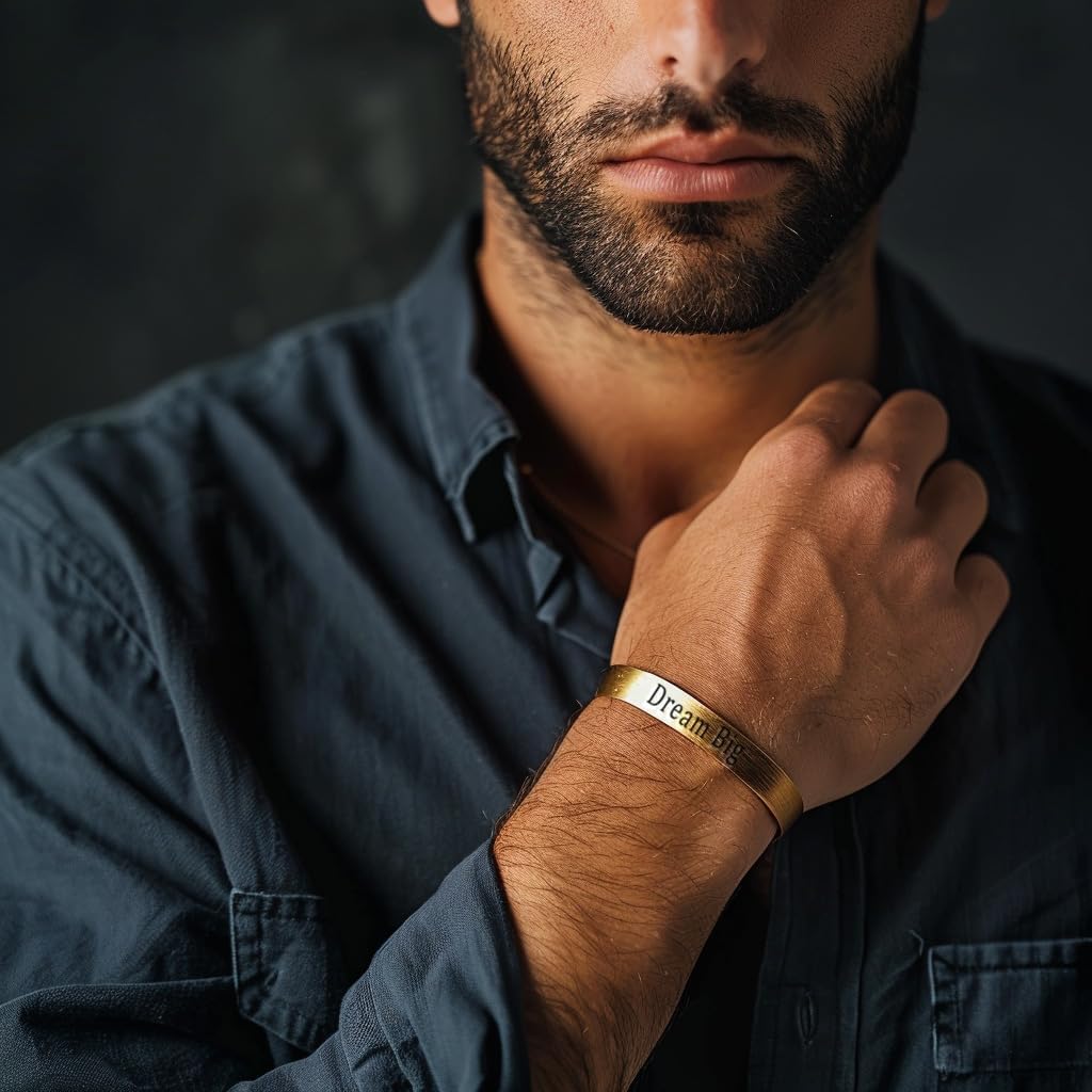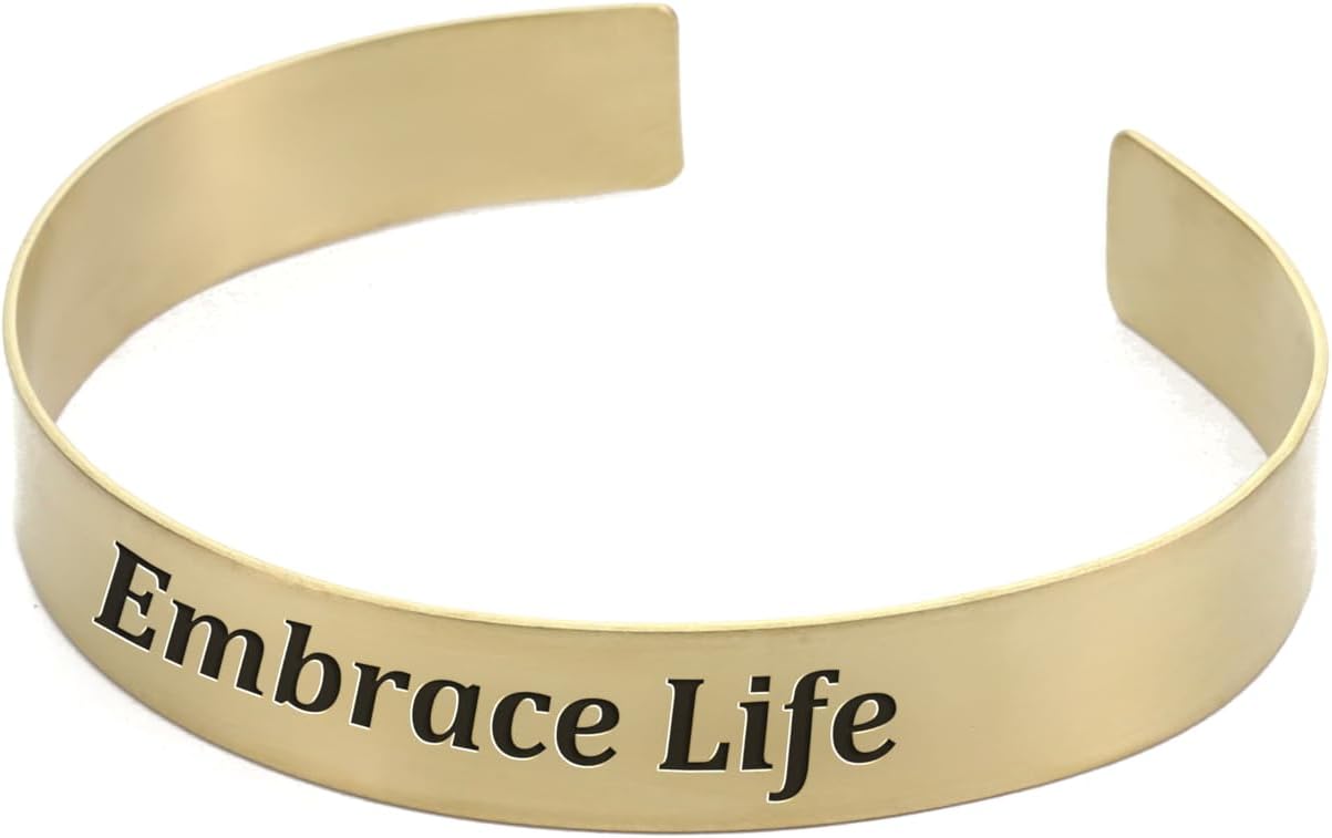 Celebrate life's journey with this stunning men's 14k gold wide engraved open cuff bracelet, featuring a custom "Embrace Life" engraving. Crafted from high-quality gold, this unisex bracelet combines durability with elegance, making it a perfect piece of personalized jewelry. The wide design adds a bold and modern touch, while the open cuff style ensures a comfortable fit. Ideal for both men and women, this custom gold bracelet makes a thoughtful gift or a distinctive personal accessory. Whether worn daily or on special occasions, this "Embrace Life" bracelet is sure to inspire and be cherished