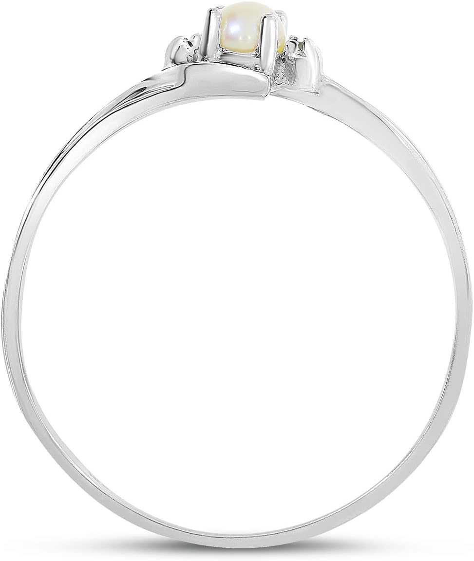 This 14k white gold pearl and diamond ring features a 4 mm freshwater cultured pearl.