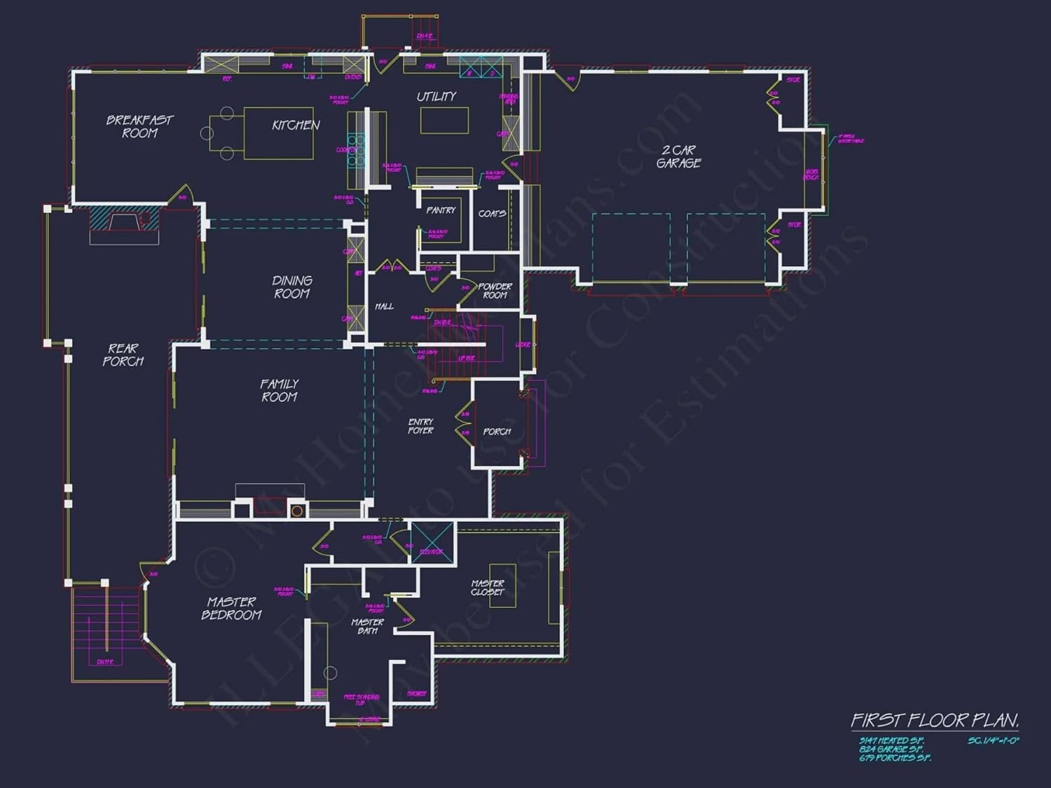 Luxury French Country House Plan with 5 Bedrooms and Elegant CAD BlueprintsDiscover this 4,547 sq. ft. French Country house plan featuring 5 bedrooms, 5+ baths, vaulted ceilings, and refined architecture—includes editable CAD blueprints and unlimited builds.This French Country house plan offers a perfect mix of sophistication and functionality. Designed for modern living, it delivers timeless European charm and seamless architectural flow.Key Features of the Home PlanLiving Areas - Heated & UnheatedHeated area: 4,547 sq. ft. across two expansive stories.Unheated extras: Full basement, covered porches, patio, and terrace.Bedrooms & Bathrooms5 total bedrooms including a luxurious first-floor Owner Suite with spa-style bathroom and large walk-in closet.5+ bathrooms including Jack and Jill setups and private en-suites for secondary bedrooms.Interior HighlightsVaulted ceilings and 9ft+ height create a sense of grandeur and light.Open floor plan connects family room, kitchen, and breakfast nook. Explore open layouts.Gourmet kitchen includes island, walk-in pantry, and breakfast nook for casual elegance.Fireplace anchors the family room with cozy ambiance. See fireplace options.Bonus room and recreational spaces upstairs for hobbies, entertainment, or guests.Study/Office on the main floor ideal for remote work or a quiet library.Garage & Storage DetailsGarage Bays: 2-car garage with optional lower-level garage access.Garage Type: Attached with under-home option for sloped lots.Storage: Generous attic space, basement expansion, and multiple walk-in closets.Outdoor Living FeaturesCovered front and rear porches for relaxing or entertaining in shade.Brick and stucco exterior with elegant detailing ensures low-maintenance curb appeal.Spacious terrace and back patio extend your lifestyle into nature.Architectural Style: French