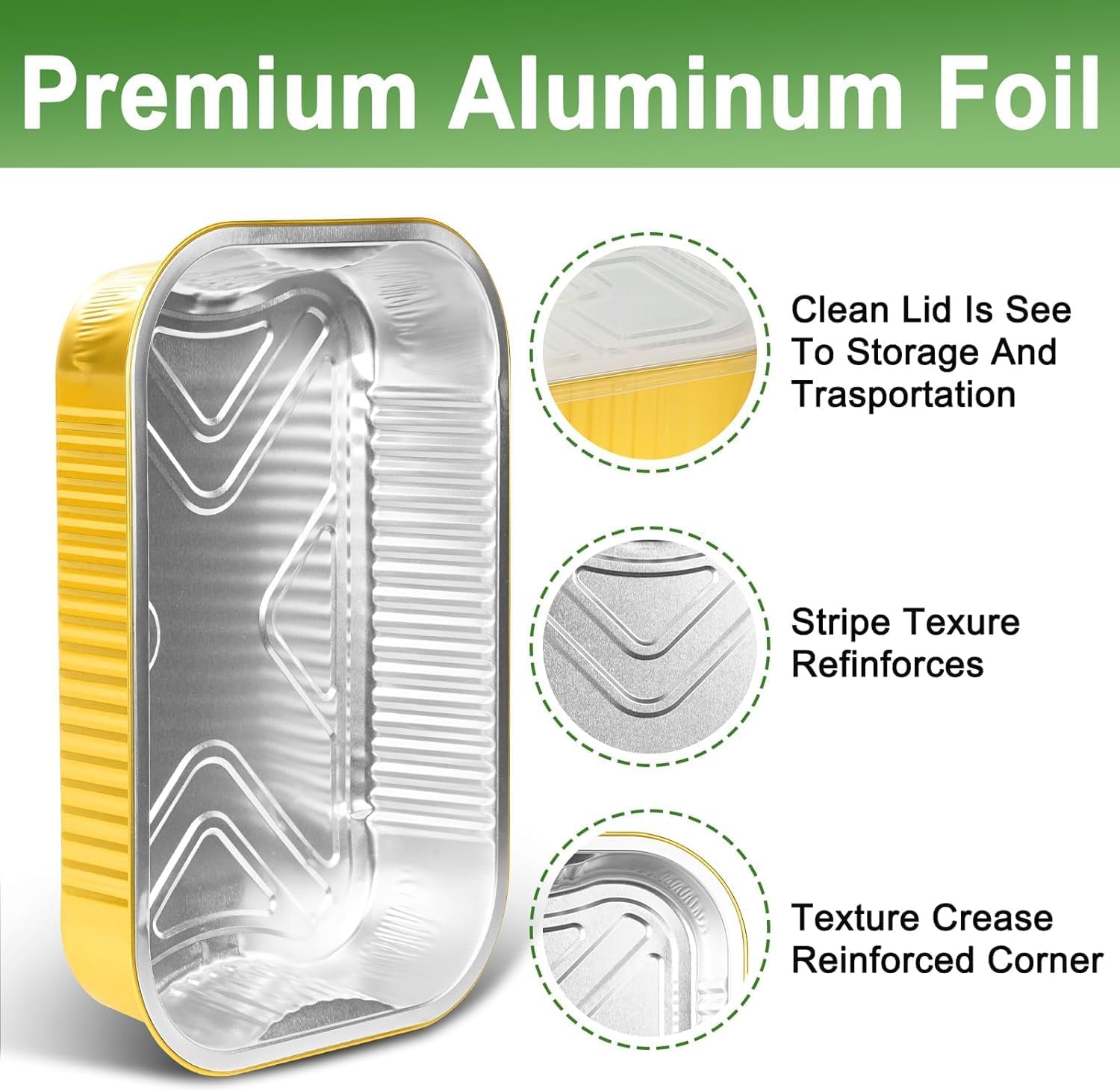 • 【Safety & Durable】Gold foil pan is made of high-quality aluminum material, high temperature resistant, can withstand oven temperature up to 600°F.Food-grade plastic cover. Free of harmful substances, healthy and safe.