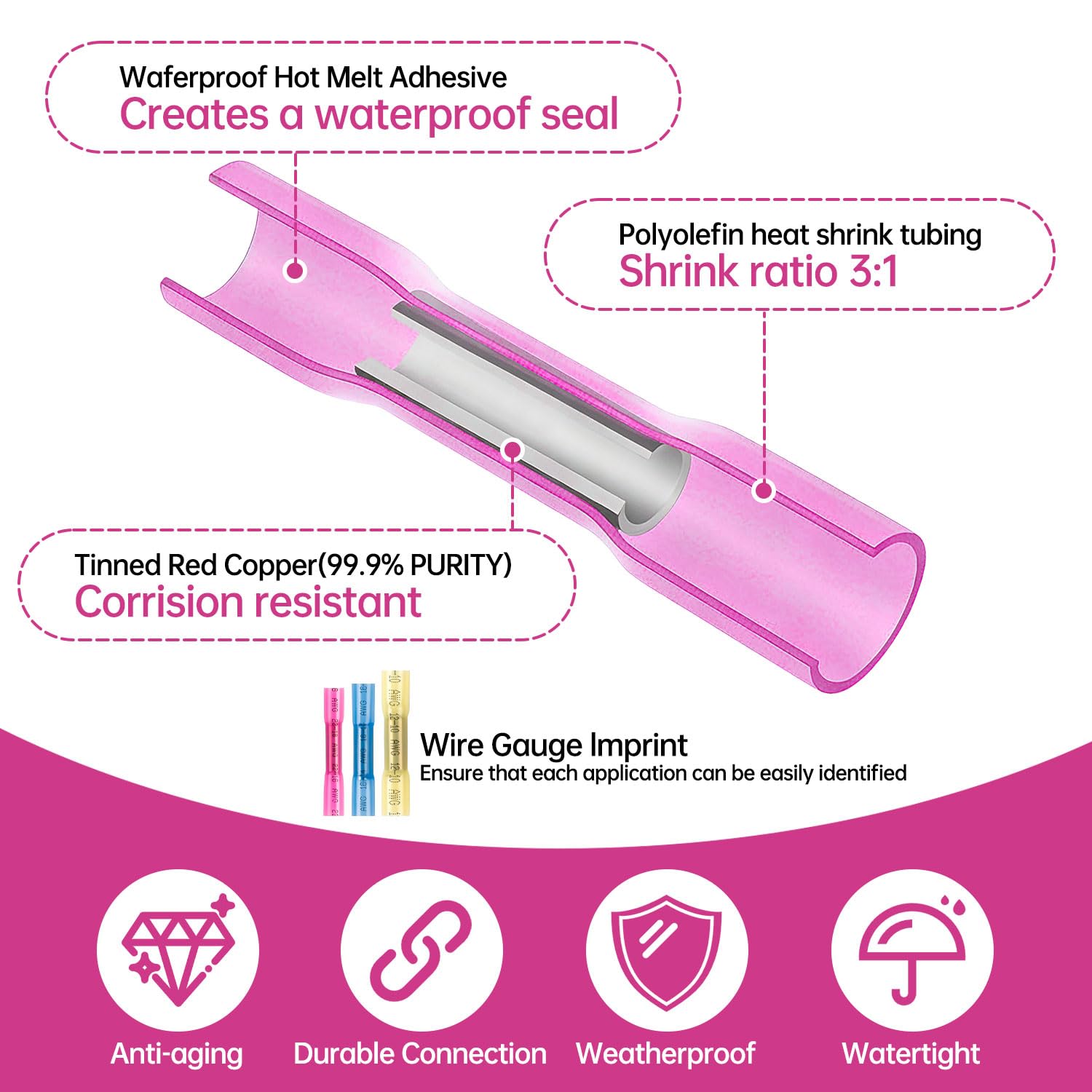 1500PCS Heat Shrink Butt Connectors, Heat Shrink Wire Connectors, 16-14 AWG 22-16 AWG 12-10 AWG Waterproof Electrical Insulated Crimp Wire Splice for Boats, Cable, Wiring, Automotive, Home