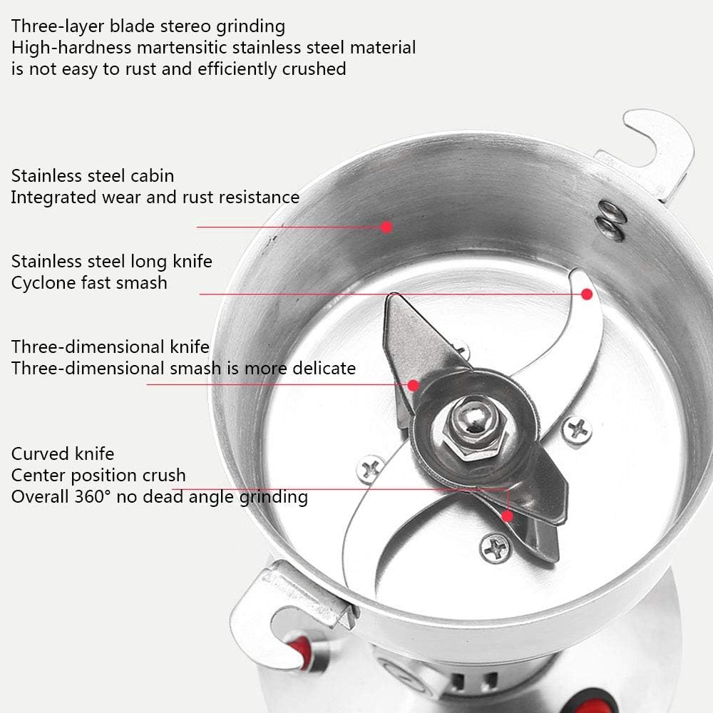 Product function: can smash Chinese herbal medicines, grains and grains, beauty food, mineral food, seasoning, feed, bait, etc. Scope of application: family clinic, medical room, pharmacy, mill, beauty, SPA, food and beverage store, etc. Crushing materials: Ejiao Sanqi Rice Red Bean Chili Sesame Yam Walnut Peanut Corn Sugar Candy About fineness: the fineness base of the pulverizer is higher, the better the machine performance is, the finer the unit is, the more smashing is finer. About power: the higher the power of the crusher, the faster the machine starts, the faster the powder is, the more delicate Name: Multifunctional stainless steel pulverizer Power: 850W Voltage frequency: 220V 50HZ Weight: 1.9 (kg) Specification: 150g Production capacity: 0.5 (kg / h) Spindle speed: 28000 (r/min) Feed particle size: 50 (mm) Discharge size: 300 (mm) Dimensions: 32*15*14(m) Cabin type: one-piece stainless steel stretching chamber Open cover: anti-lock fast open cover Motor speed: 27000R/MIN Crushing degree: 70-300 mesh Working time: 8 minutes Interval: 5 minutes