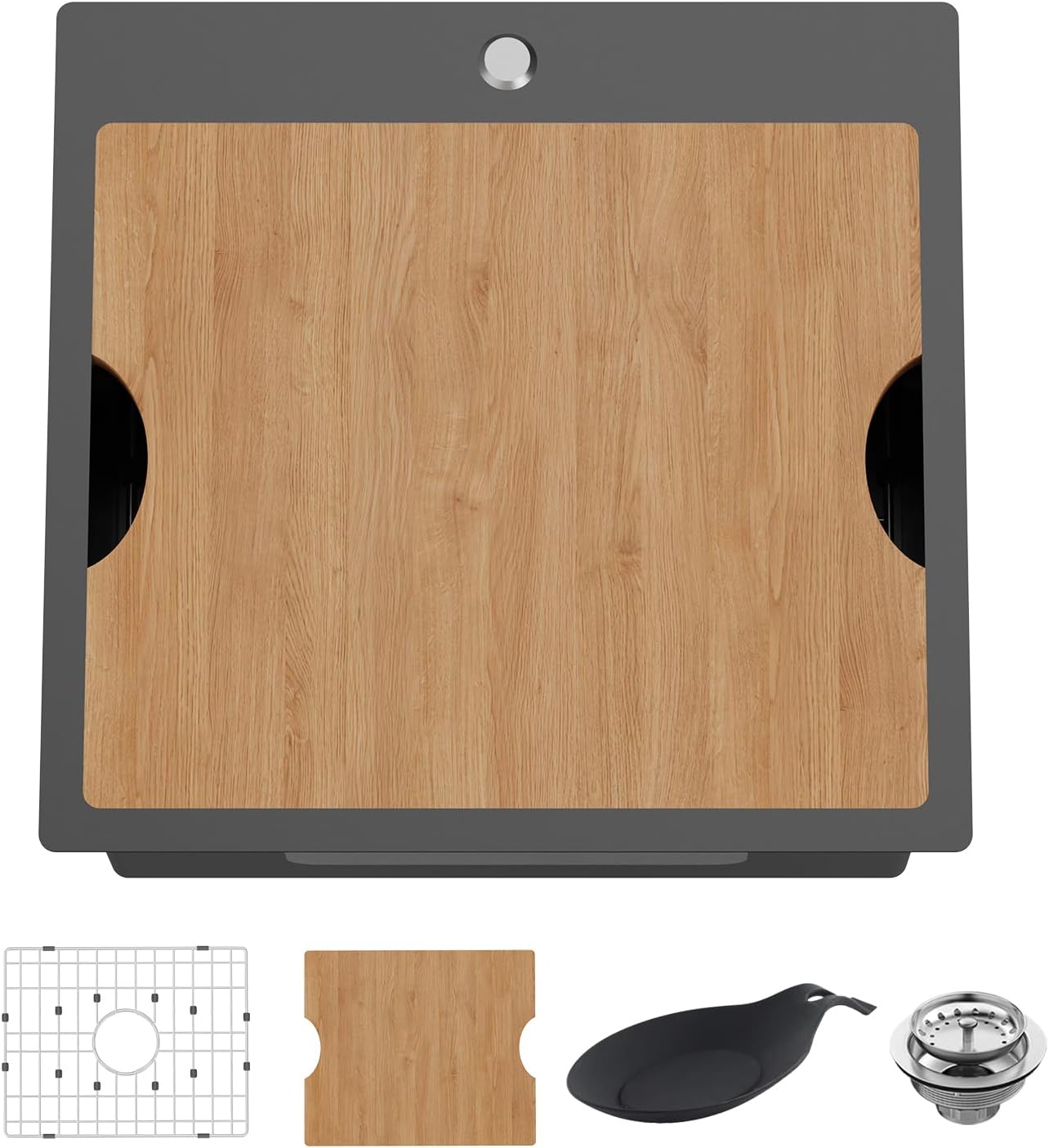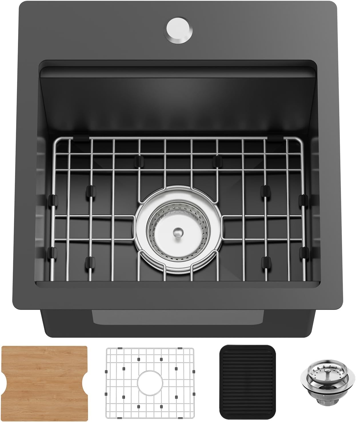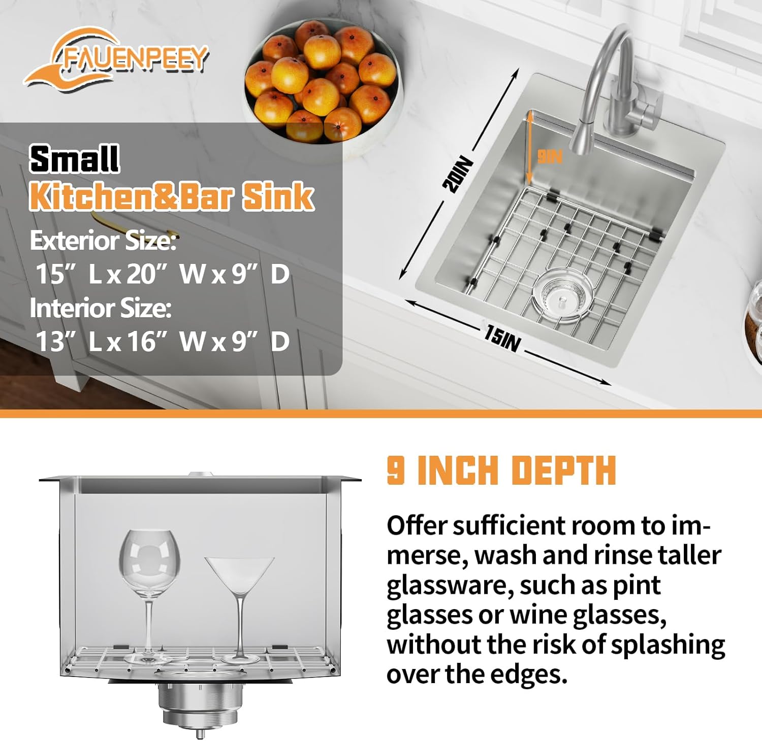 small kitchen sink,15x20 workstation sink, drop in kitchen sink, bar sink,stainless steel kitchen sink,topmount kitchen sink,single bowl kitchen sink, small rv sink,kitchen & bar sink 15x20 inch kitchen & bar sink workstation is a practical and stylish choice for homeowners looking to elevate their kitchen experience, providing a versatile and organized workspace for various cooking, cleaning, and utility tasks. The X-shaped bottom of stainless steel 15 inch workstation sink creates channels or grooves that help direct water towards the drain more effectively Surface technology of ss kitchen sink resistant to corrosion, stains, and scratches, anti-condensation spray undercoating helps prevent condensation buildup on the underside of the sink.