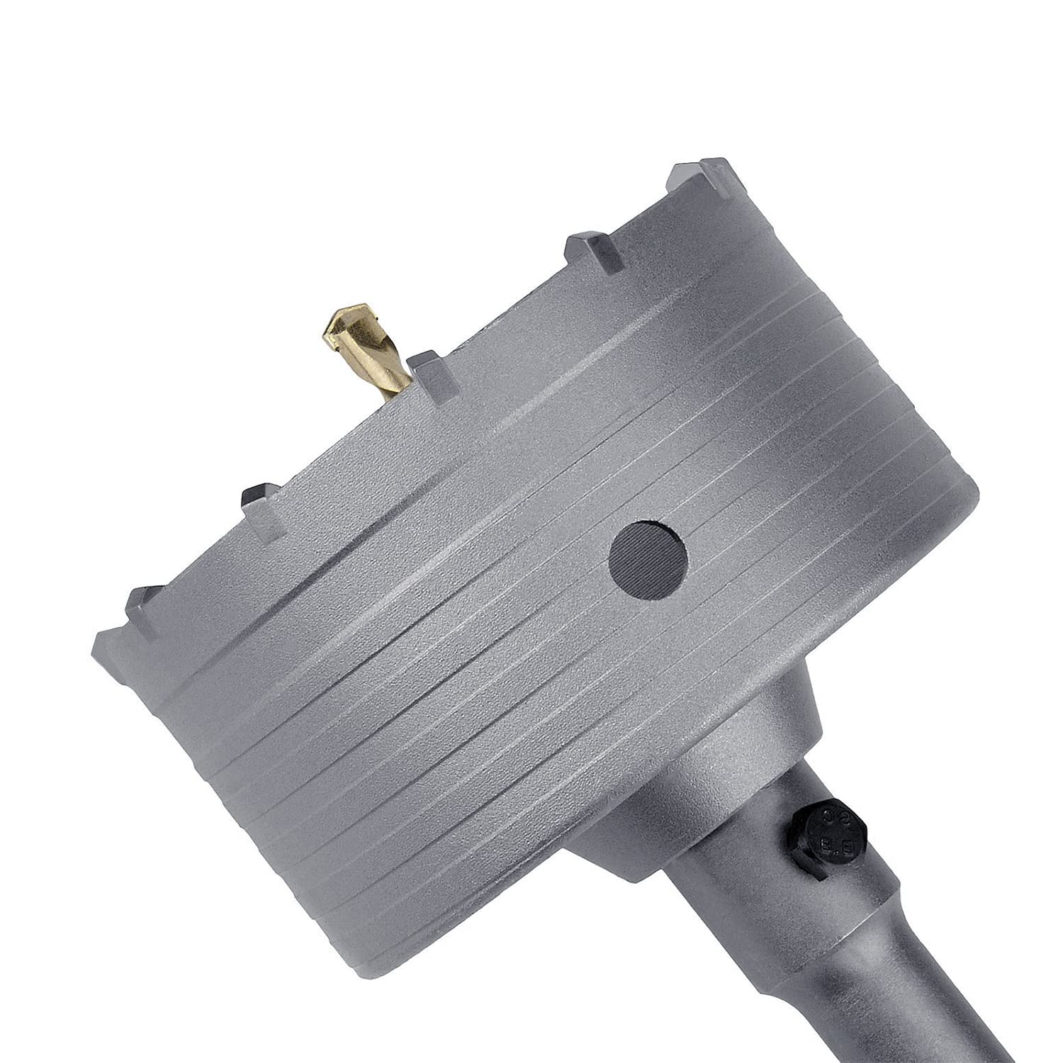 Cutting diameter: 160mm ( 6.3 inch ) hole saw with 220mm SDS Plus Shank Connecting Rod ,,1x Center positioning drill bit ,2x positioning drill screw