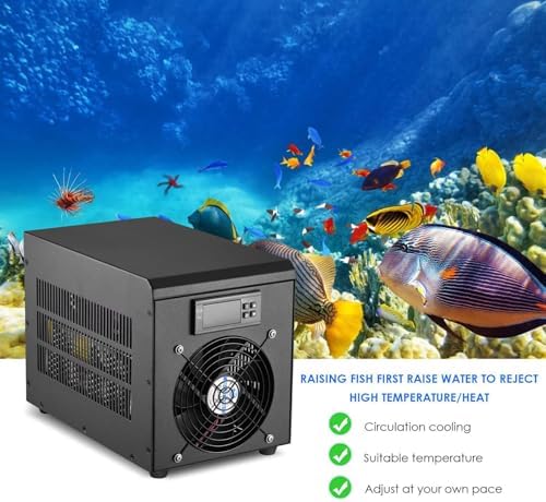 Introducing our advanced aquarium cooler, designed to maintain optimal water temperatures for your aquatic environment. Whether you're caring for delicate hydroponic water plants, vibrant jellyfish, or colorful coral, this silent water cooler ensures a stable and refreshing habitat. With specifications that cater to a variety of needs, our aquarium cooler operates efficiently at 180W and supports water volumes from 30L to 300L. Its compact size of 25 x 17.5 x 16cm makes it easy to integrate into your setup without taking up valuable space. The cooler operates at a noise level of only 35-45dB, providing a peaceful atmosphere for both you and your aquatic life. Our product is suitable for various applications, including crystal shrimp and salamanders. The optimal water flow rate of 1-3L/min ensures effective cooling while maintaining the health of your water plants. The cooler also features dual temperature units (℃/°F) for your convenience. Included in the package are the main unit, a water pump, a 2m water pipe, a power cord, and an instruction manual for easy setup. We are committed to your satisfaction. If you have any questions or need assistance, please don’t hesitate to reach out to us. Experience the benefits of a well-regulated aquatic environment with our aquarium cooler today!