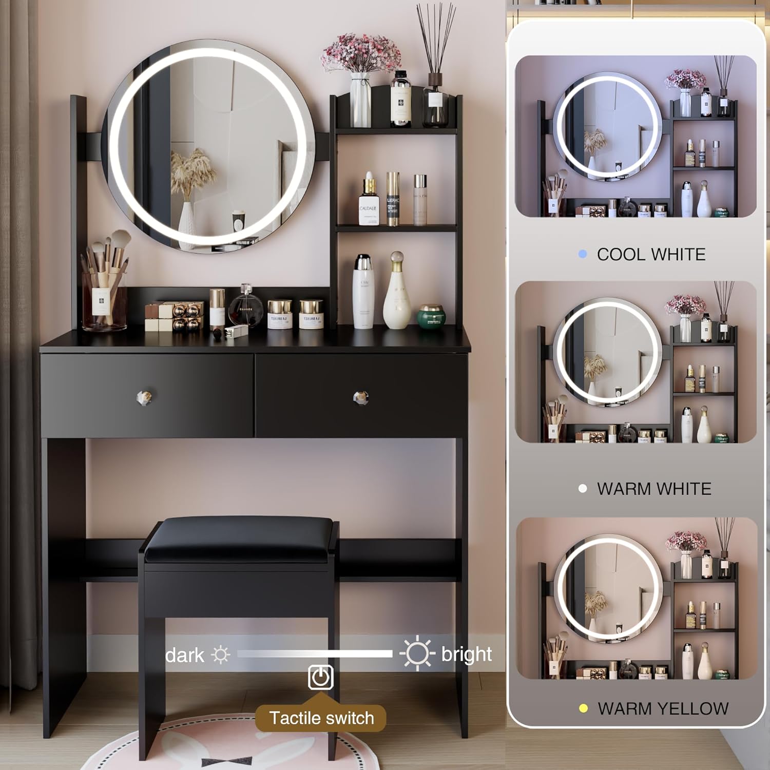 Notice: ? There are approximately 40 different boards in the packaging, some of which not suitable for permanent markings, so do have numerical markings on them. But please don't worry about it, we provide detailed installation instruction that include photos each board. You can easily distinguish it based photos. We also assembly videos to help you complete assembly. Step 1: Before installation, find an erasable marker and leave enough space place these room. 2: Distinguish board shape, hole position, size pictures instruction, then mark corresponding number 3: Follow instructions step by step. 4: Use a cloth erase marks boards. Including: 1 x dressing table stool Installation instructions