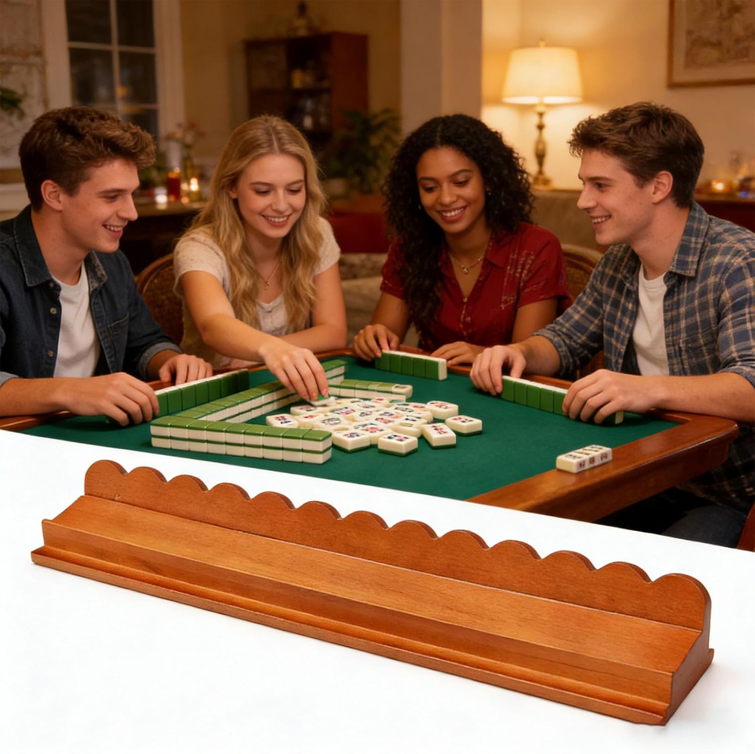 17inch Mahjong Tiles Organizers Rack With Pusher And Unique Wavy Shaped Design for America Mahjong Game Tiles Organizing Features: The 17inch mahjong rack features innovative push rod for effortless tiles arrangement and quick gameplay Perfect for family gatherings and friendly matching, reducing waiting time while enhancing game flows Unique wavy shaped design adds visual appeal while tiles slippage Use selected wood, this mahjong rack combines aesthetic with functionality for elegant gaming Use wood for longlasting stability and resistance to warping Great for frequent mahjong players seeking great during extended gameplay Combines tiles arranging and measuring functions, saving space while serving double purposes Great for homes or clubs with limited space Simple and intuitive operations makes it easy for beginners and experienced players Encourages family bonding and social interaction during mahjong games Specifications: Component: Wood Product: Approx 43.18x6.35cm / 17x2.5inch Type: 01 / 02 Package Includes: Type 01: 1PC Mahjong Rack Type 02: 4PCS Mahjong Racks Note: Please allow 1-2cm errors due to manual measurement Due to the difference between different monitors, the picture may not reflect the actual color of the item