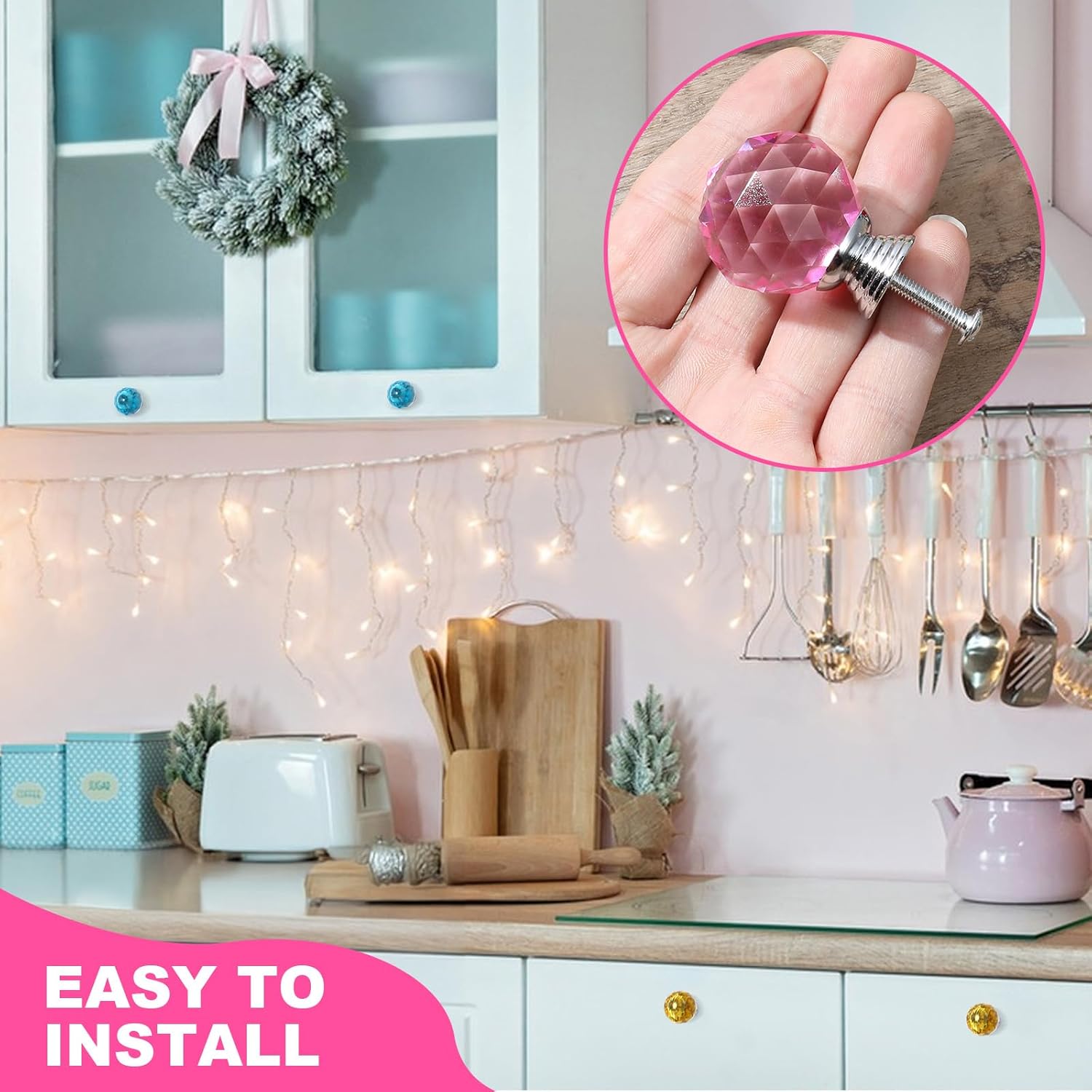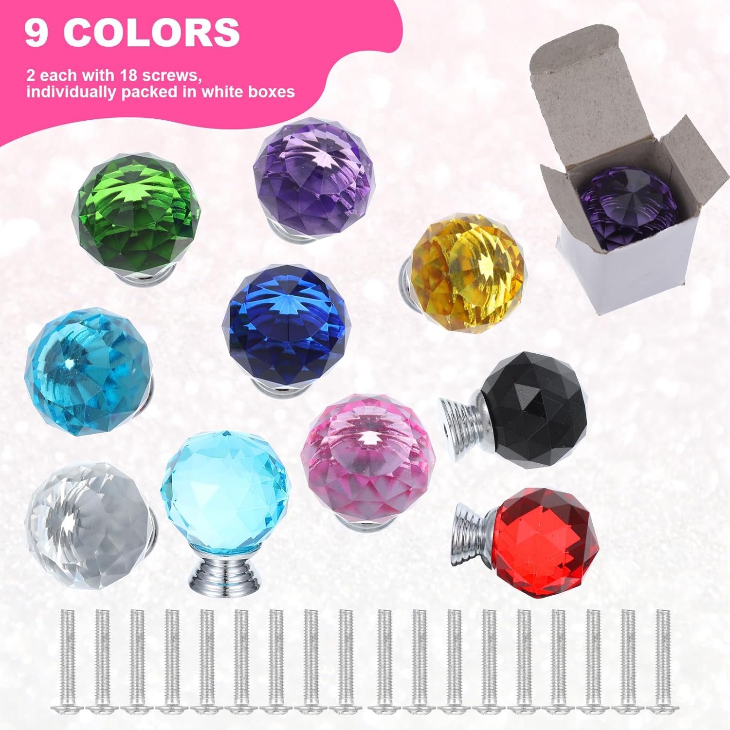 Effortless Installation: these diamond dresser knobs are easy to install, you just need to find the mounting position on the board and drill holes, then thread the screws from the back of the board to tighten them, which is easy and convenient, saving time and effortExtensive Usage: crystal drawer knobs are suitable for any dressers, drawers, wardrobes, cabinets, and other furniture in your home, kitchen, bathroom and moreSpecifications:Material: CrystalColor: colorfulSize: 1.18 x 1.06 7 InchPackage includes:18 x Knobs Notes:Manual measurement, please allow slight errors on size.The color may exist a slight difference due to different screen displays.