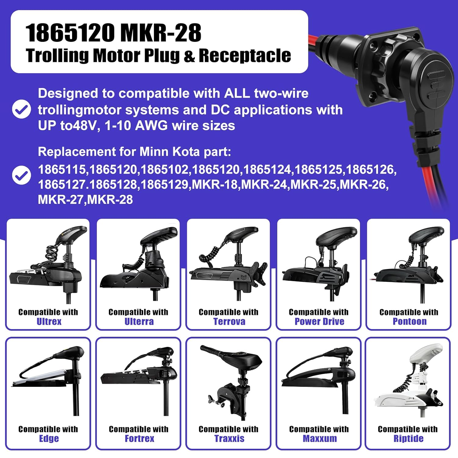 | Included Components | Trolling Motor Plug and Receptacle |