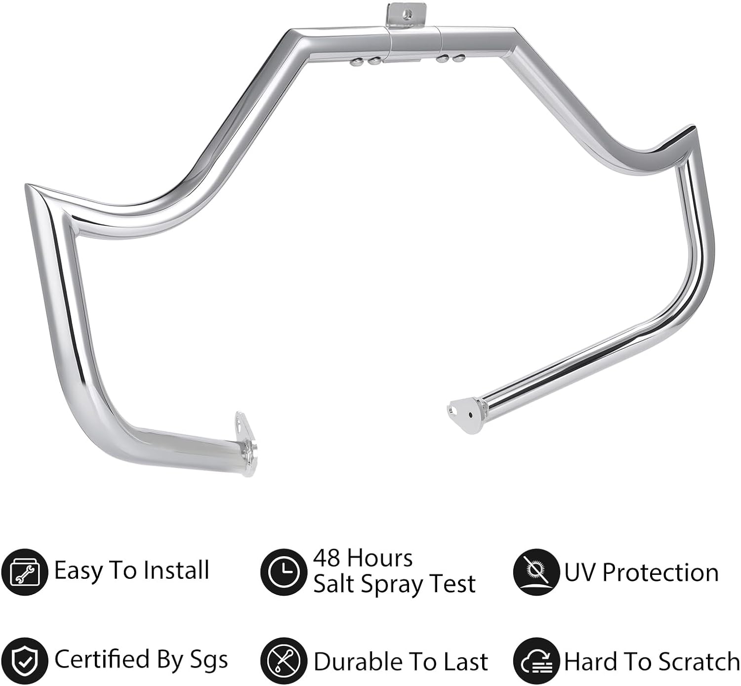 Features:Unique horn shape, suitable for long-distance travel1 1/4" (32mm) Diameter Metal Tubing304 stainless steel Anti-loosening locking screws includedPlating can pass 72 hours salt spray testFitment:Compatible with Harley Davidson Touring Models 1997-2008(except Road Glide); Does not fit Models Equipped With Fairing Lowers. Fit for Harley Road King FLHR 1997-2008 EFI FLHRI 1997; 2000-2006 Fit for Harley Road King Classic FLHRC 2007-2008 EFI FLHRCI 1998-2006 Custom FLHRS 2004-2007 EFI FLHRSI 2004-2006 Fit for Harley Street Glide FLHX 2006-2008 EFI FLHXI 2006 Fit for Harley CVO Road King 2 FLHRSEI2 2003 Fit for Harley CVO Electra Glide FLHTCSE 2004 FLHTCSE2 2005 Fit for Harley CVO Road King FLHRSE4 2008 FLHRSE3 2007 FLHRSEI 2002 Fit for Harley CVO Ultra Classic Electra Glide FLHTCUSE 2006 FLHTCUSE2 2007 FLHTCUSE3 2008 Fit for Harley Electra Glide Classic FLHTC 1997-2005; 2007-2008 EFI FLHTCI 1997-2006 Standard FLHT 1997-2008 EFI FLHTI 2003-2006 Fit for Harley Ultra Classic Electra Glide FLHTCU 1997; 2007-2008 EFI FLHTCUI 1997-2006